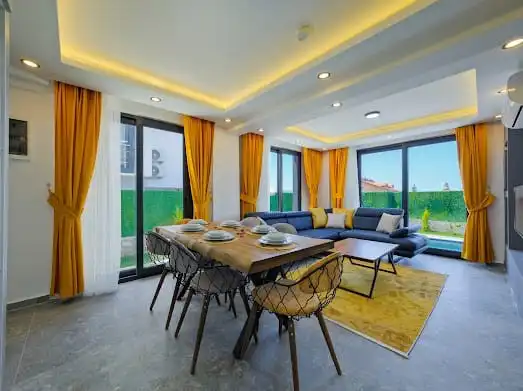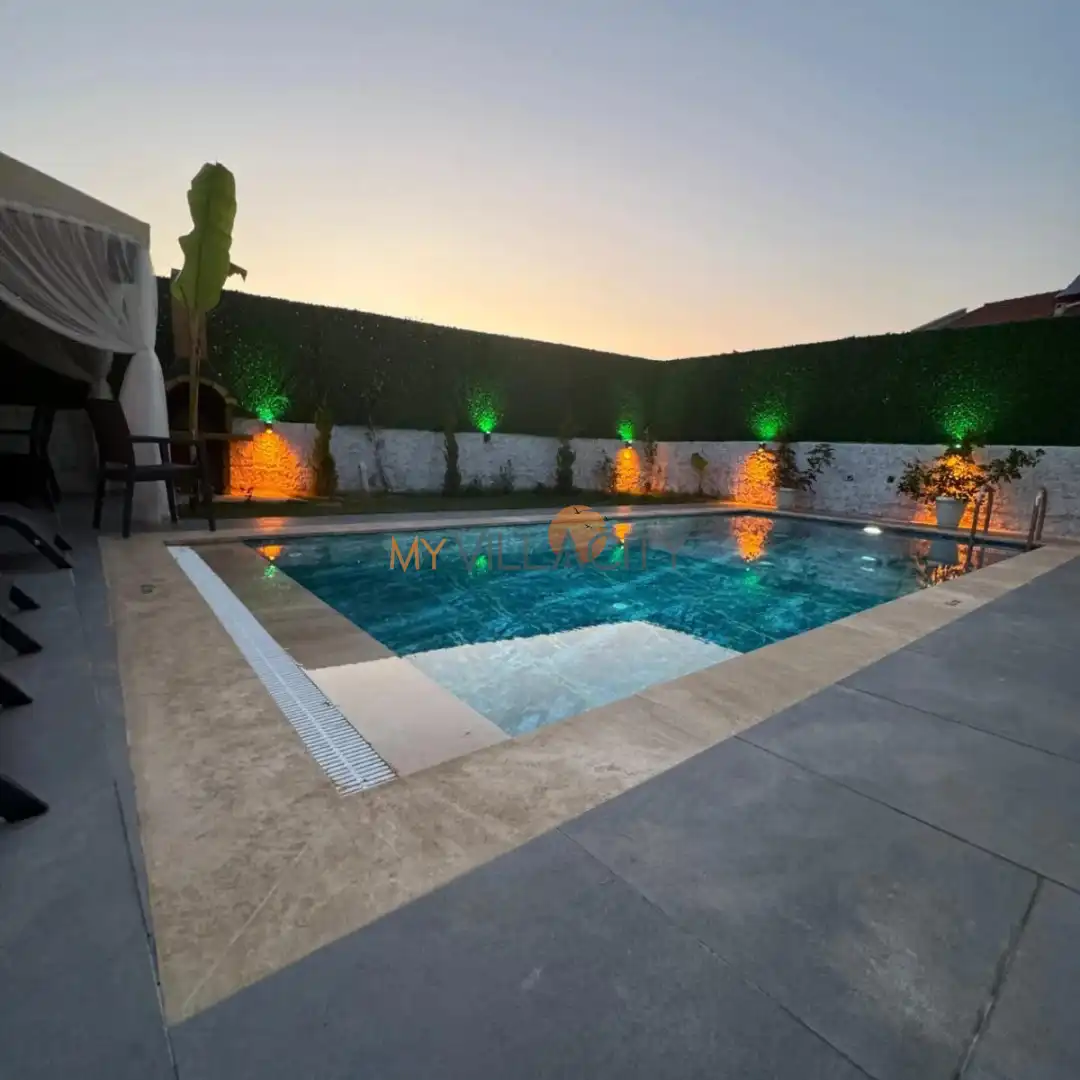 Villanın en dikkat çekici özelliklerinden biri ise tamamen size ait özel yüzme havuzu ve keyifli bahçe alanıdır. Güne serin havuzunuzda başlayabilir, gün boyu güneşin tadını çıkarabilir ve akşam saatlerinde sevdiklerinizle birlikte huzurlu anlar yaşayabilirsiniz. Dış gözlerden uzak yapısı sayesinde mahremiyet ön planda tutulmuş olup, özellikle balayı çiftleri için oldukça ideal bir atmosfer sunmaktadır.