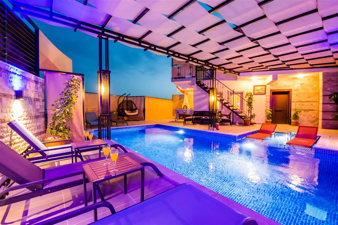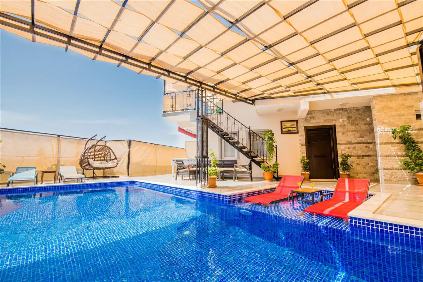 Villa Baha, Kalkan'ın Kördere mevkiinde, 8 kişi kapasitesi ile geniş ailelere ve arkadaş gruplarına mükemmel bir konaklama sunar. Modern ve rahat bir atmosferde, her türlü konfor düşünülmüş bu villada, Kalkan'ın muhteşem manzarasının tadını çıkarabilirsiniz. MyVillaCity, Villa Baha'da unutulmaz bir tatil deneyimi vaat ediyor.