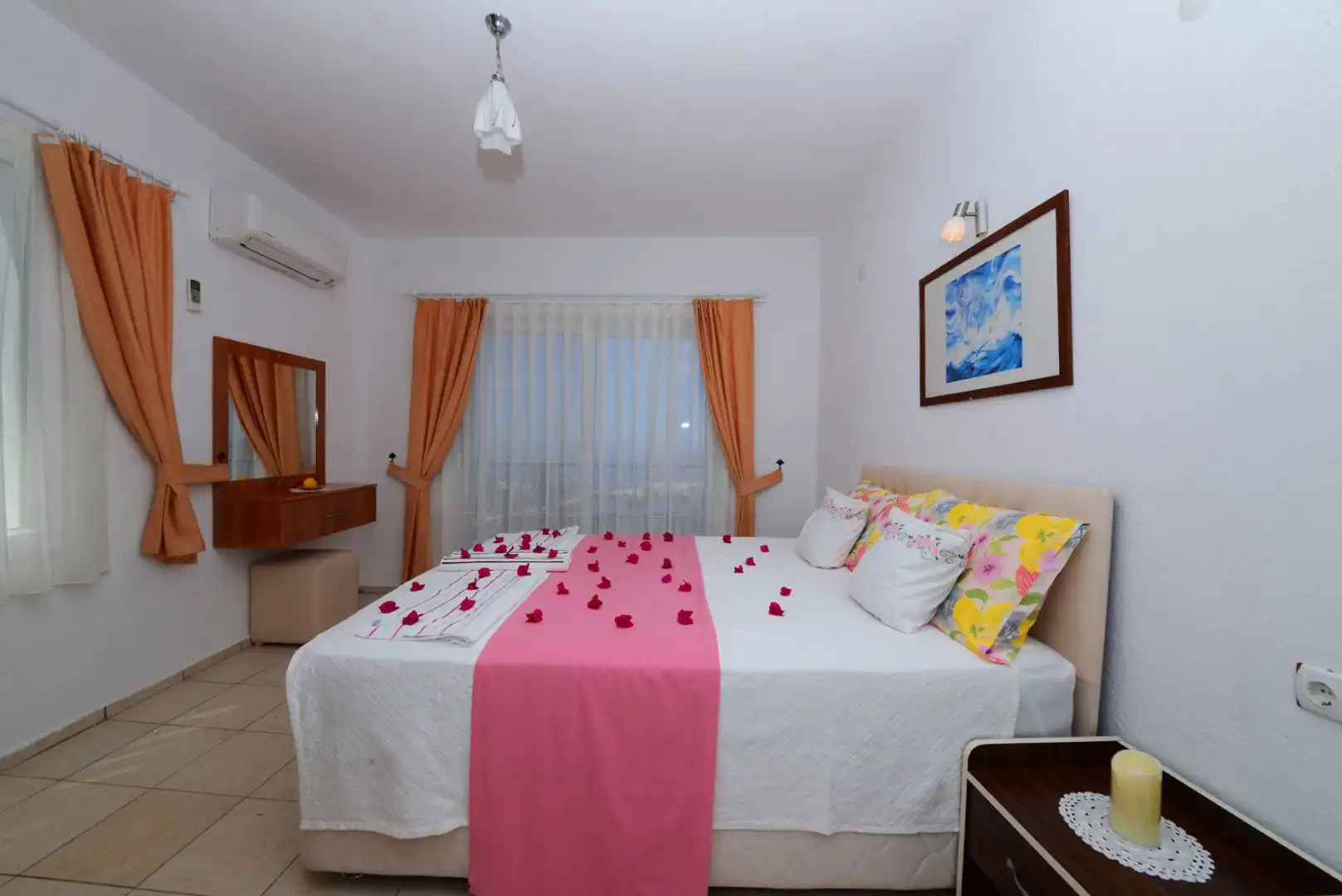 - 1 Çift Kişilik Yatak, 1 Banyo/WC, 1 Komodin, Elbise dolabı, Makyaj Masası, Klima,