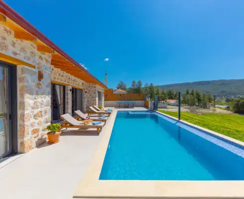 Villa Berceste, Kalkan'ın Sarıbelen bölgesinde, 4 kişi kapasitesiyle huzuru ve konforu bir arada sunan bir villadır. Özel jakuzisi ve büyüleyici doğa manzarası ile unutulmaz bir tatil vaadi. Aileler ve küçük gruplar için ideal olan bu villa, sakin bir kaçamak için mükemmel bir seçenektir.