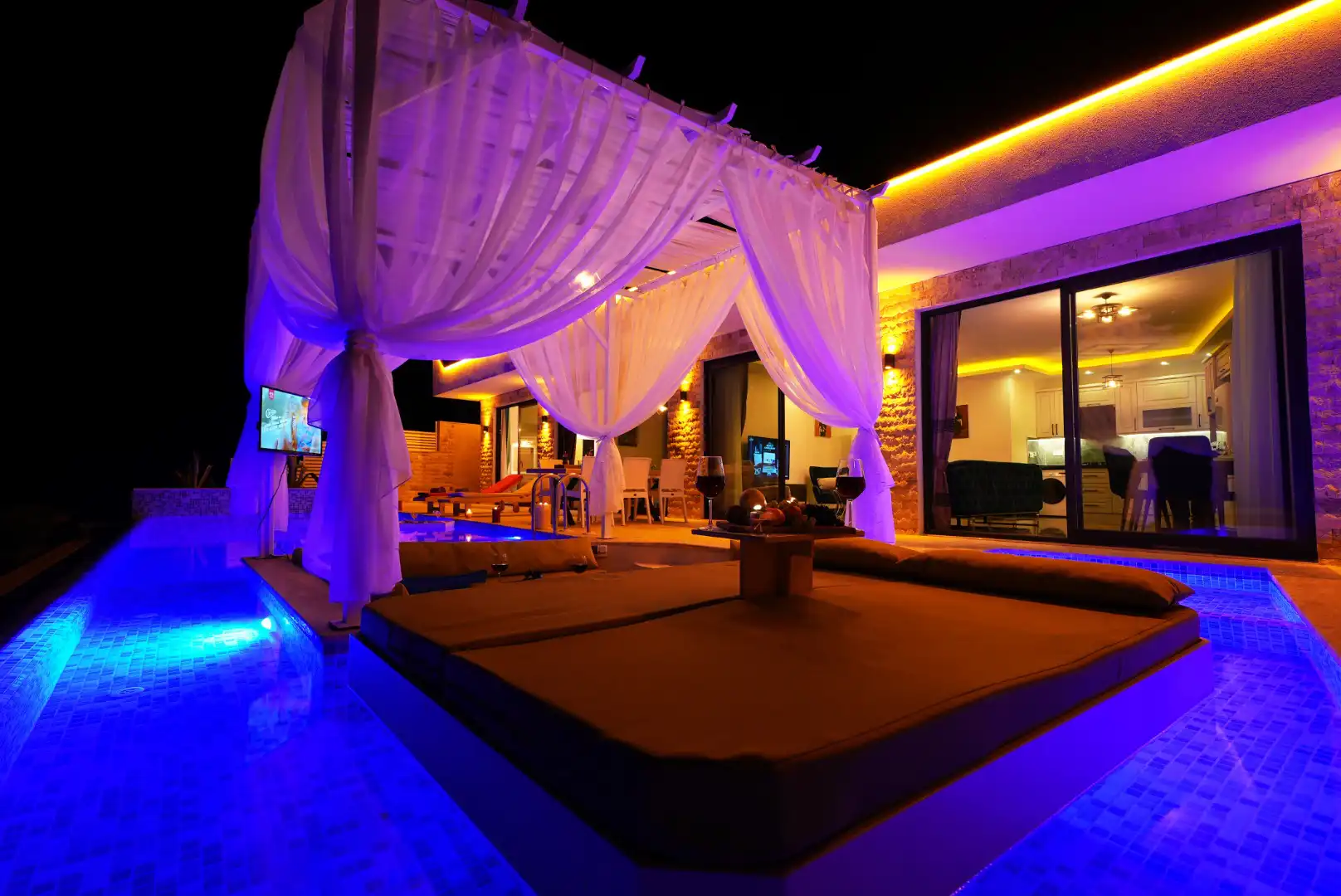 Kalkan'ın Akbel bölgesinde konumlanan Villa Berlin, 2 yatak odası ve 5 kişilik kapasitesiyle, özel havuzlu ve deniz manzaralı bir tatil deneyimi vadediyor. Geniş bahçesi ve şık tasarımıyla dikkat çeken villamız, balayı çiftleri için korunaklı ve huzurlu bir atmosfer sunuyor. Kalkan'ın büyüleyici güzelliklerini keşfetmek isteyenler için ideal bir seçim.