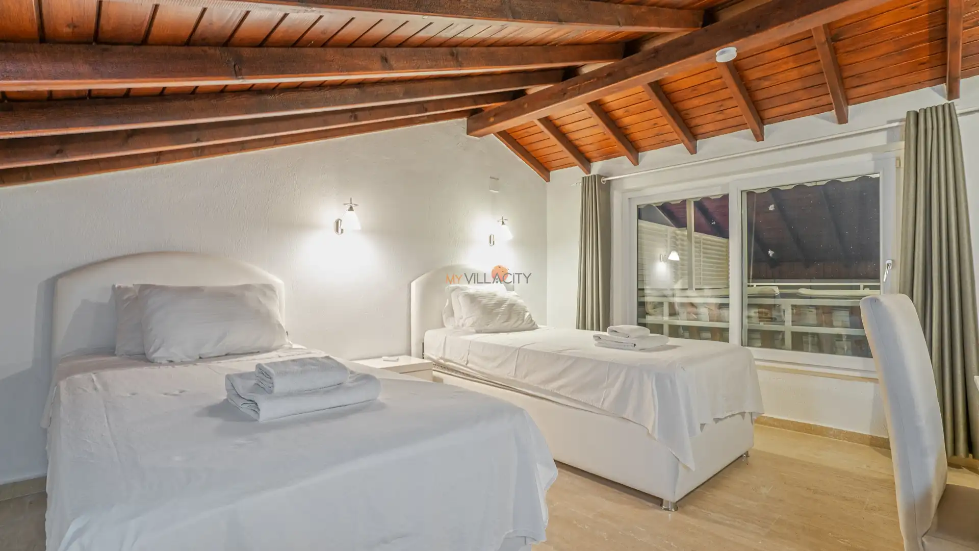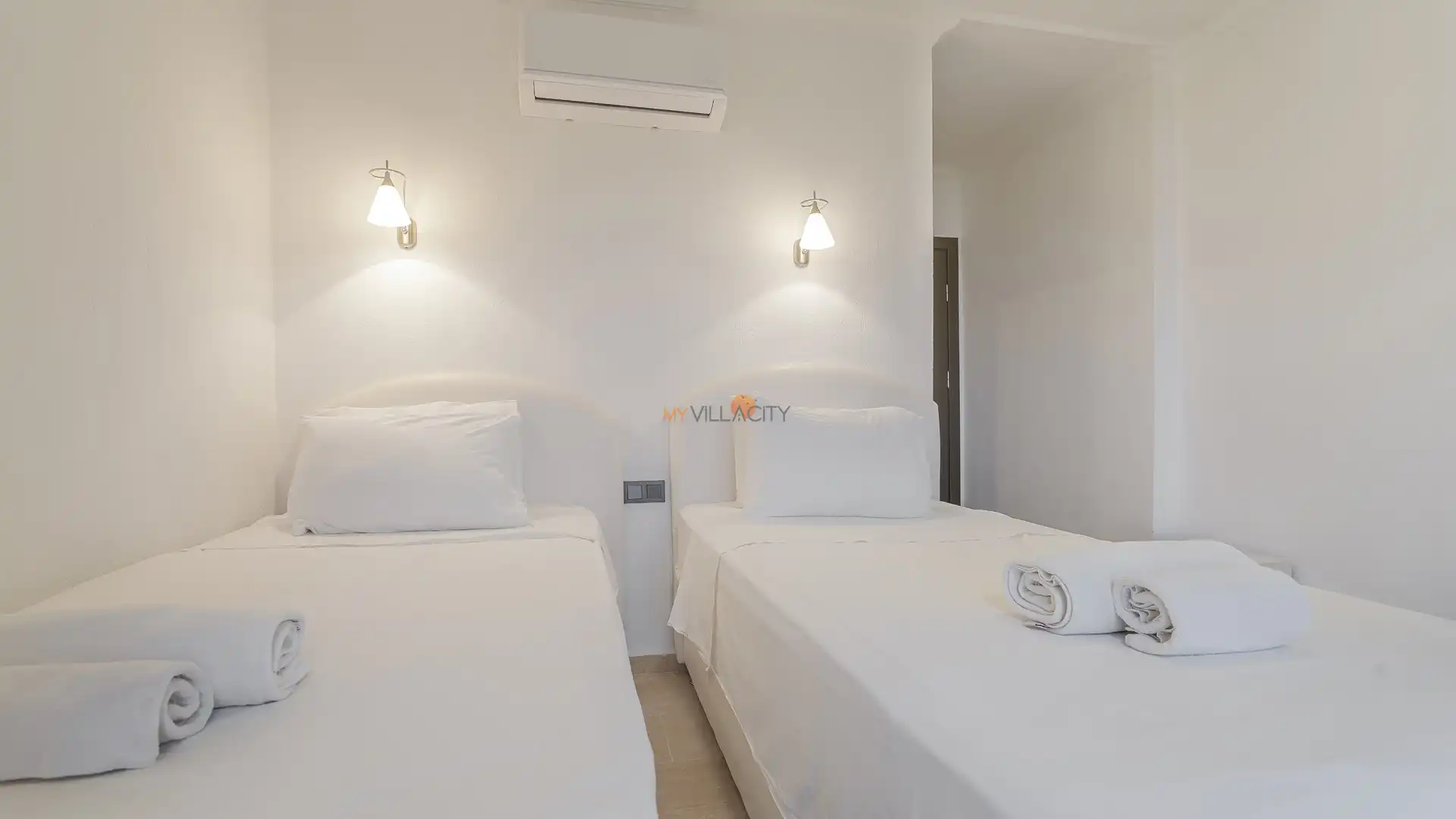 - 2 Tek Kişilik Yatak, 1 Banyo/WC, 2 Komodin, Elbise dolabı, Makyaj Masası, Klima,