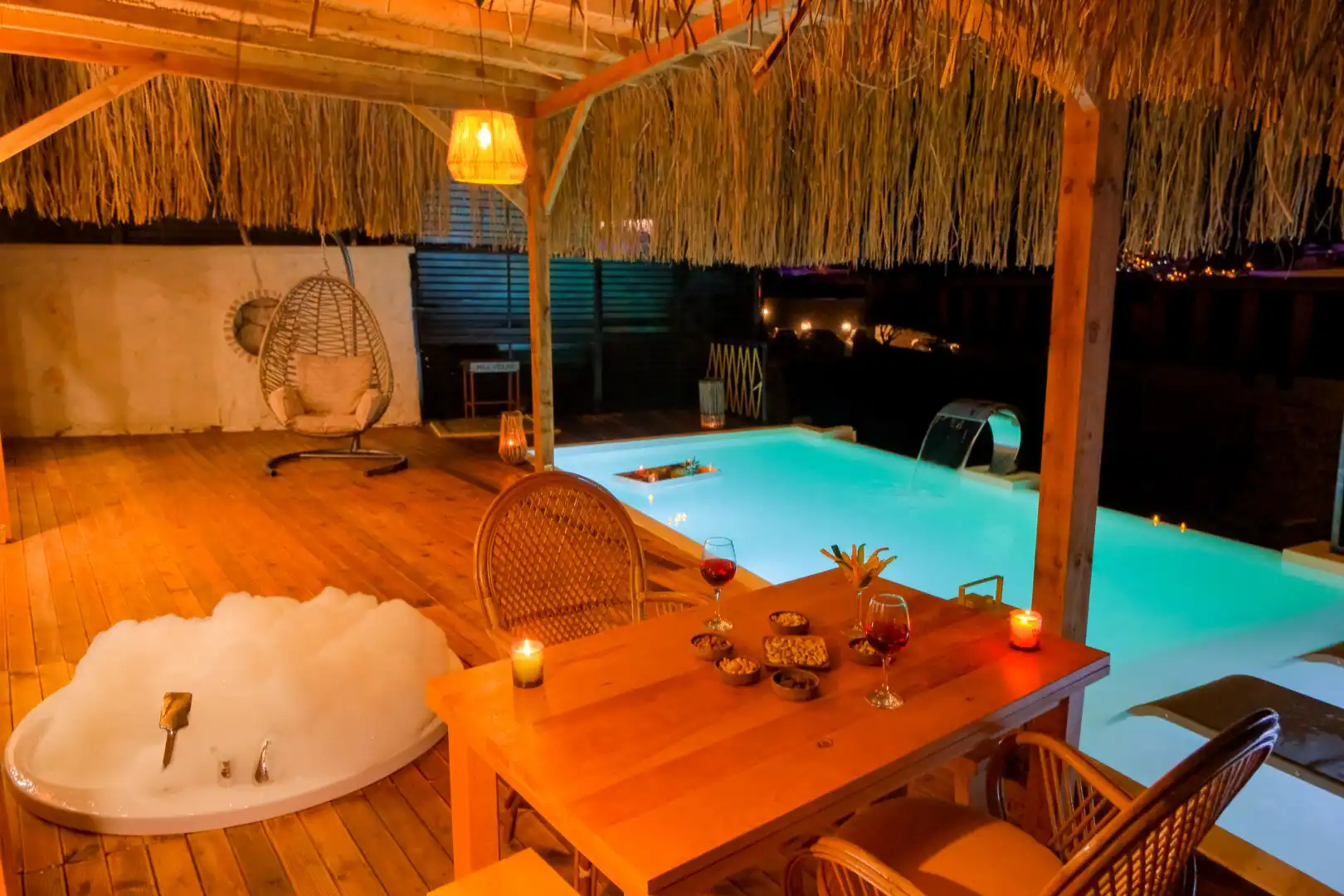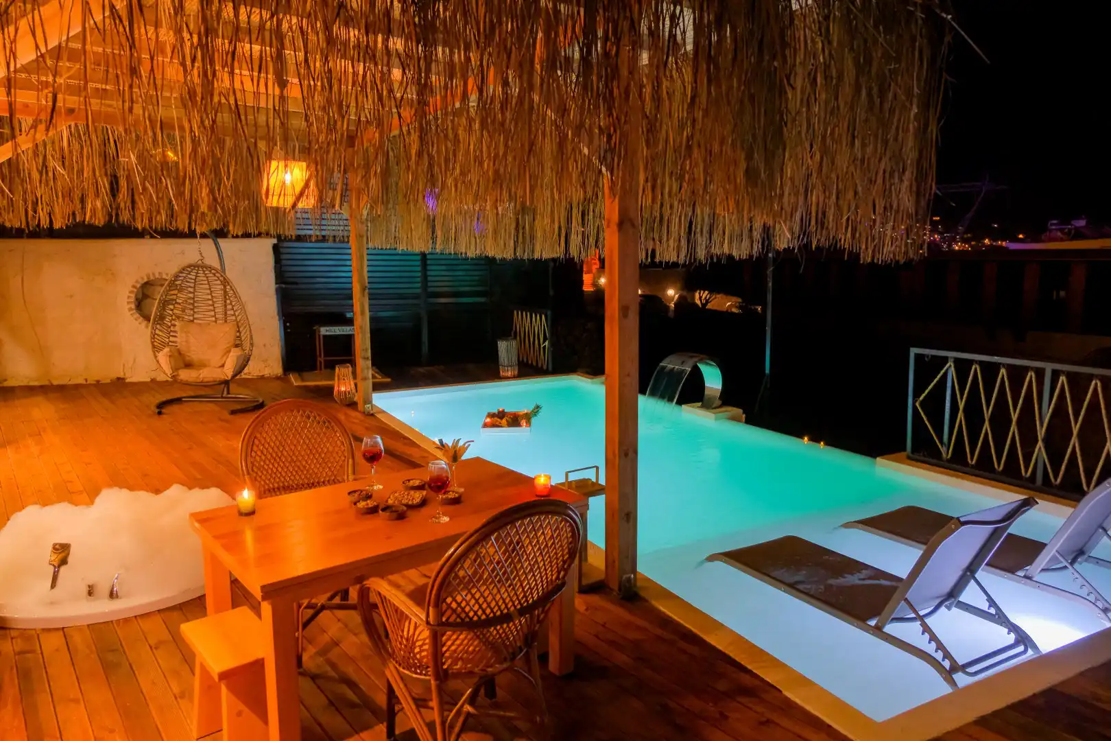 - 1 Çift Kişilik Yatak, 1 Jakuzi, 1 Banyo/WC, 2 Komodin, Elbise dolabı, Makyaj Masası, Klima,