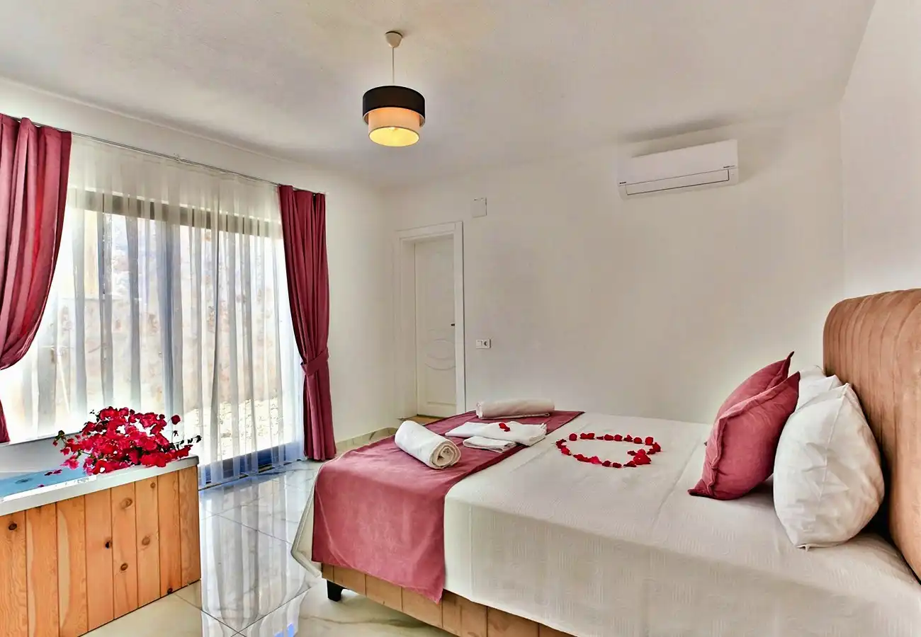 Villa Cengizhan, Kalkan Kördere'de 2 yatak odalı, 4 misafir kapasiteli bir villa. Muhafazakar aileler ve balayı çiftleri için özel olarak tasarlanmış, özel havuzlu ve doğa manzaralı bu villa, huzurlu bir tatil vaat ediyor.
