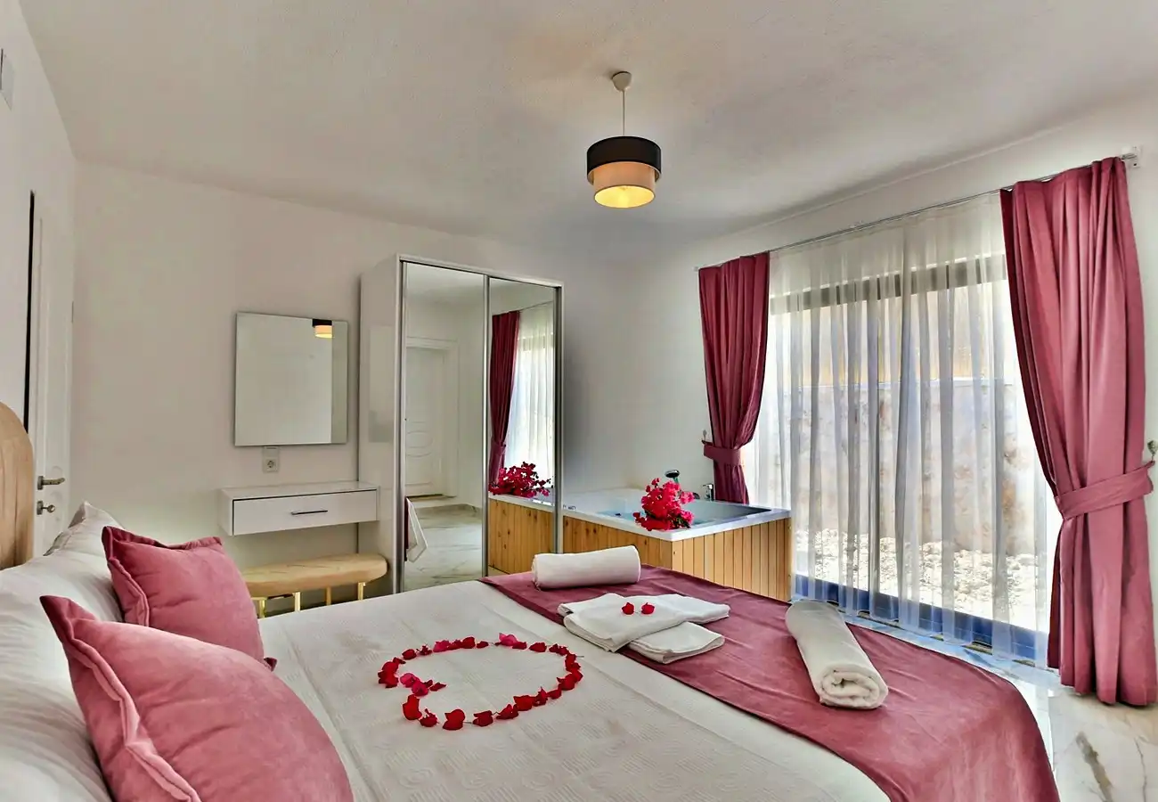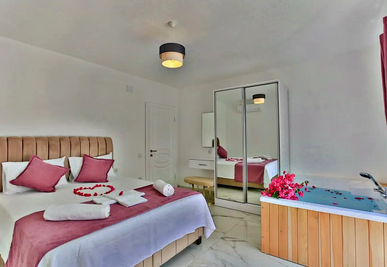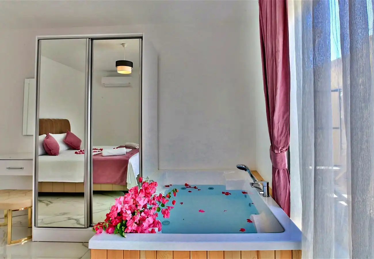 - 1 Çift Kişilik Yatak, 1 Jakuzi, 1 Banyo/WC, 1 Komodin, Elbise dolabı, Makyaj Masası, Klima,