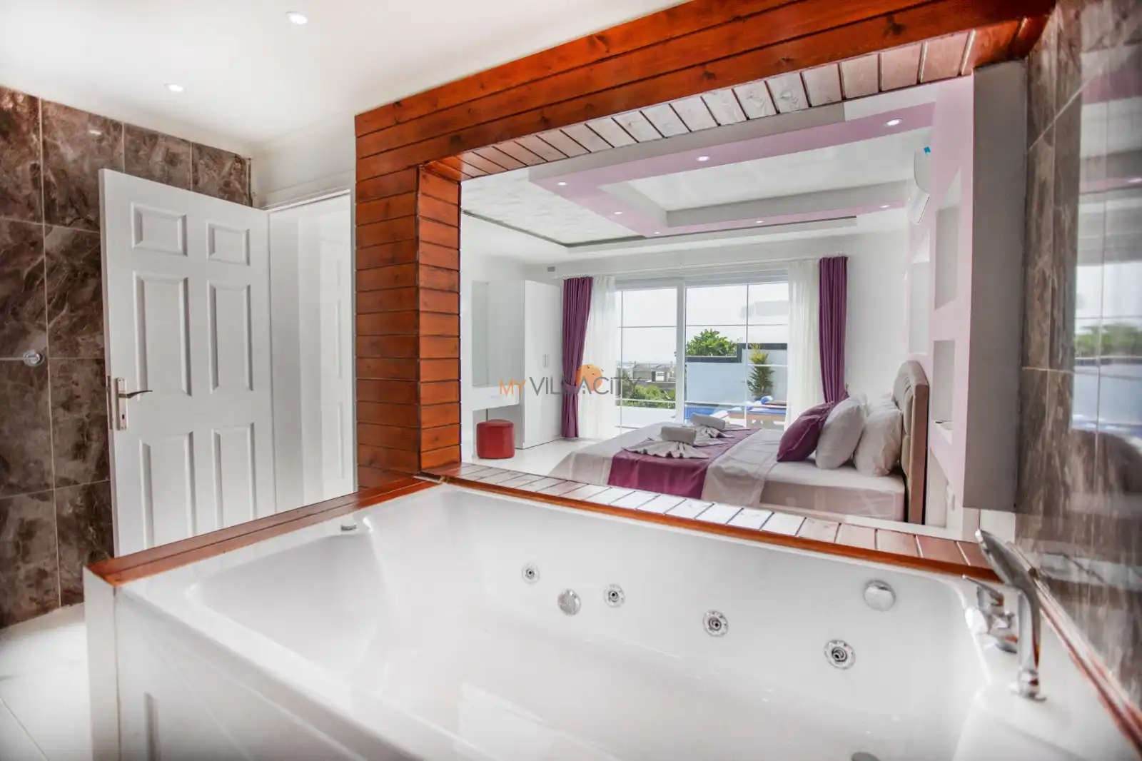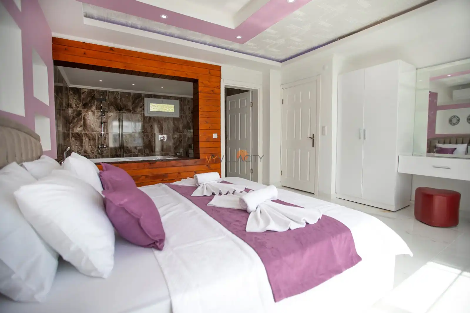 - 1 Çift Kişilik Yatak, 1 Jakuzi, 1 Banyo/WC, 2 Komodin, Elbise dolabı, Makyaj Masası, Klima,