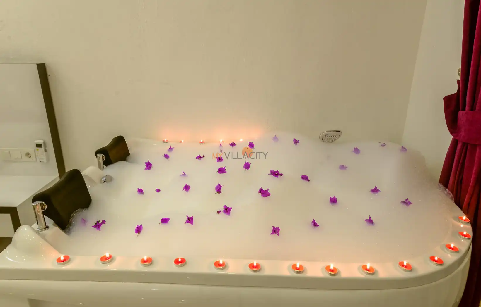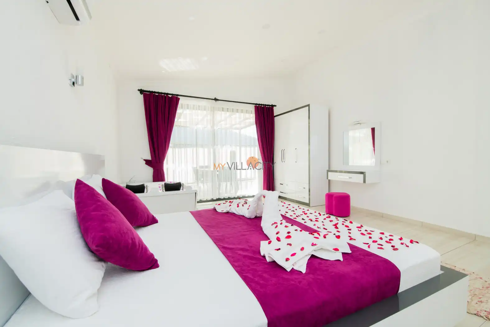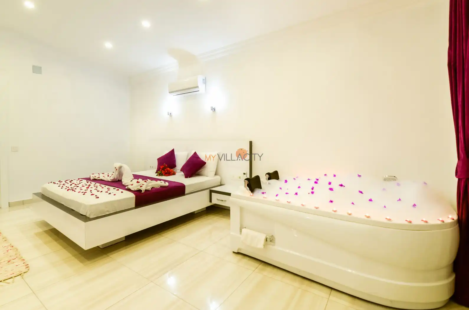 - 1 Çift Kişilik Yatak, 1 Jakuzi, 1 Banyo/WC, 2 Komodin, Elbise dolabı, Makyaj Masası, Klima,