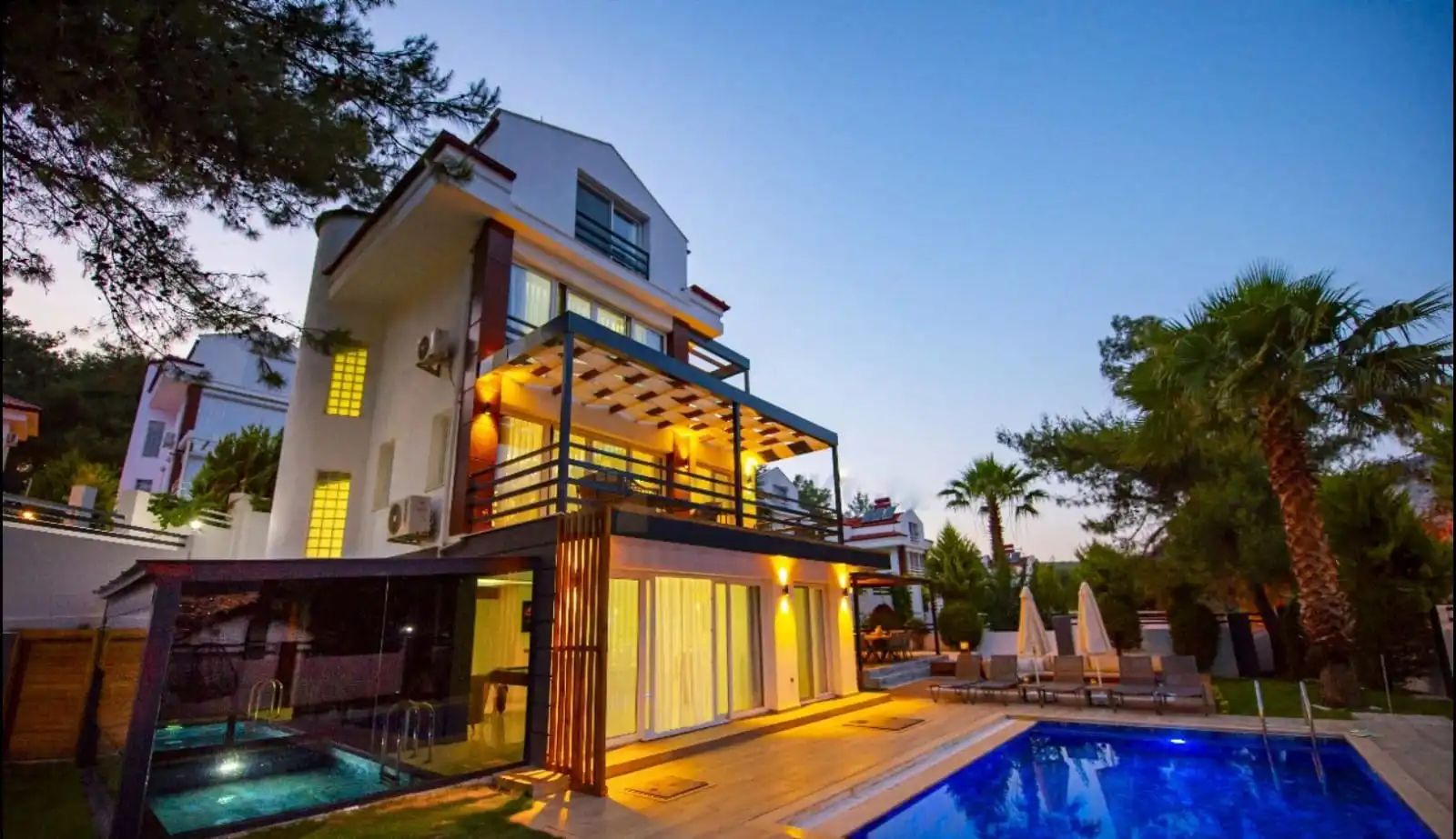 Villa Deep Sea Vip 1, Muğla Fethiye bağlı Ölüdeniz Bölgeinde yer almaktadır.Bu Villa 4 yatak odalı 8 kişi kapasiteye sahip tatil villamızıdr.Her yatak odalarında özel banyo ve tuvalet bulunuyor.Ana yatak odasında jakuzi bulunmaktadır.Modern mobilyaları, şık dekarasyonu ve lüks tatil villamızdır.Doğa ile iç içe olup sakinliğin tadını çıkarabilceğiniz bir villamızdır.Özel havuzlu ve geniş bahçesi ile ön plana çıkmaktadır.Havuz alanı tamamen korunaklıdır ve misafirlerin mahremiyetine önem verilmektedir.Villamızda özel 1 adet Kapalı havuz, 1 adet Bilardo masası bulunmaktadırVillamızda bahçesinde ,küçük misafirlerimiz için oyun alanı bulunmaktadır. Özellikle muhafazakar aileler ve geniş arkadaş grupları için ideal bir seçenektir.Huzurlu Konforlu bir tatil sizleri beklemektedir.