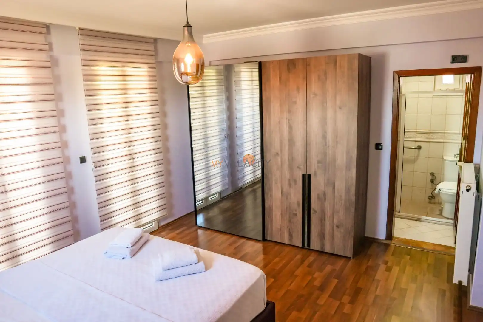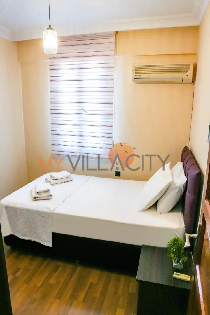 - 1 Çift Kişilik Yatak, 1 Banyo/WC, 2 Komodin, Elbise dolabı, Makyaj Masası, Klima,