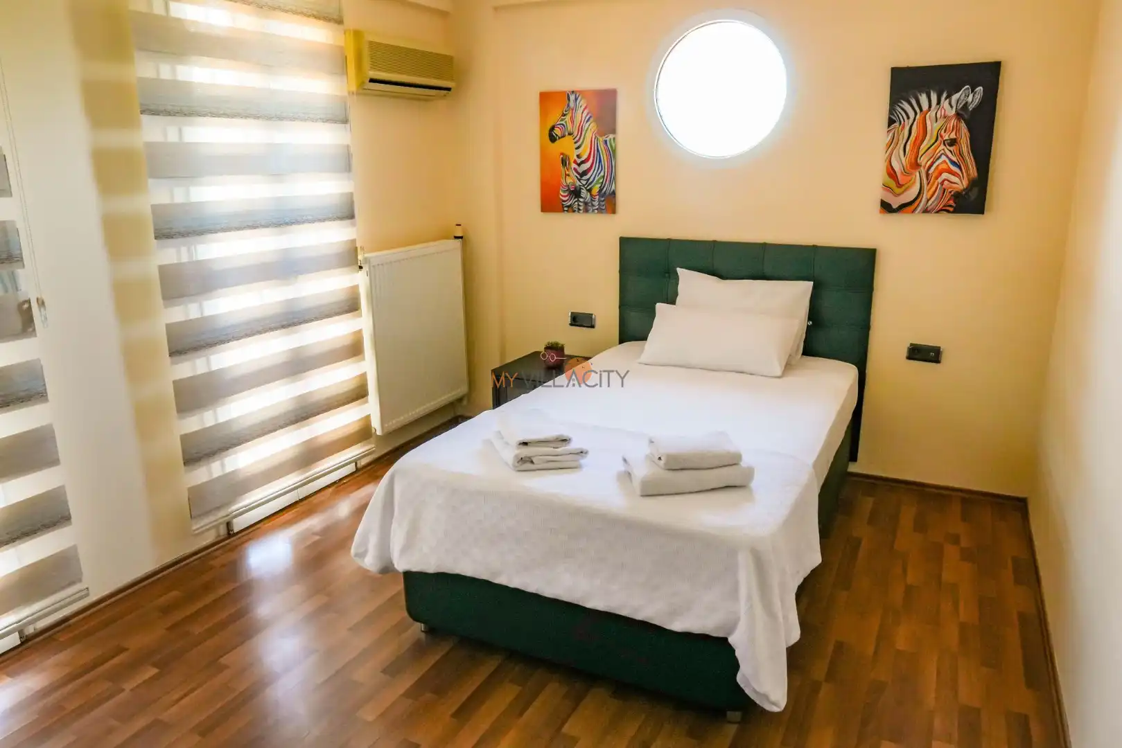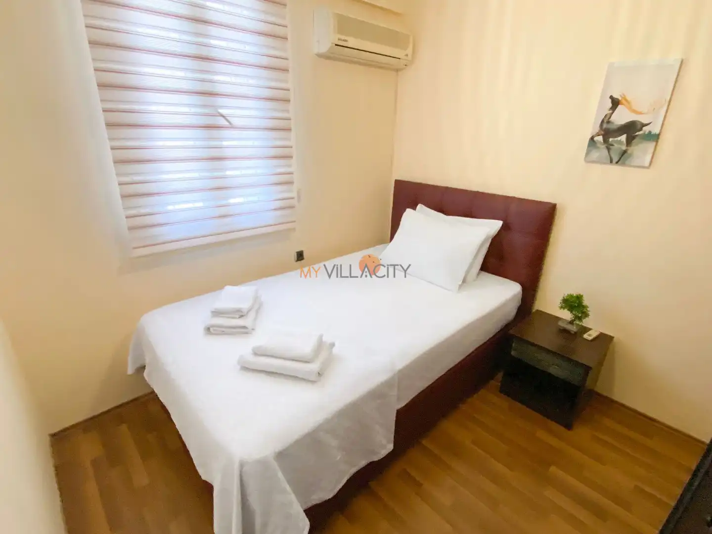 - 2 Tek Kişilik Yatak, 1 Banyo/WC, 2 Komodin, Elbise dolabı, Makyaj Masası, Klima,