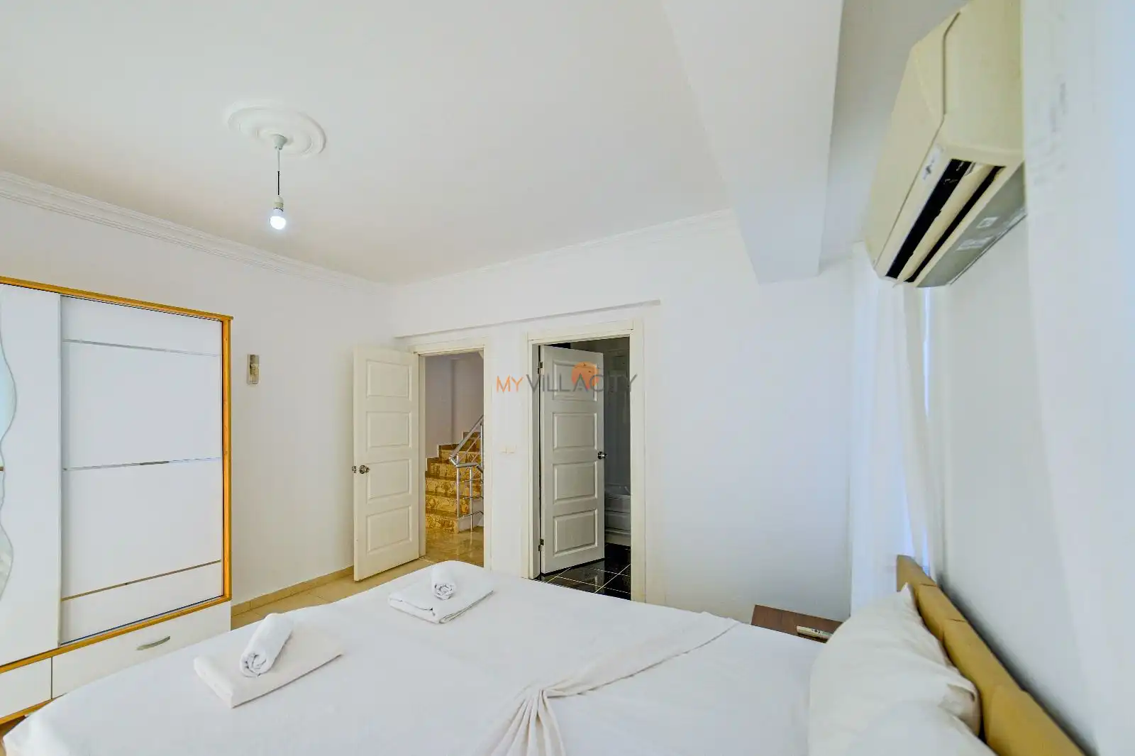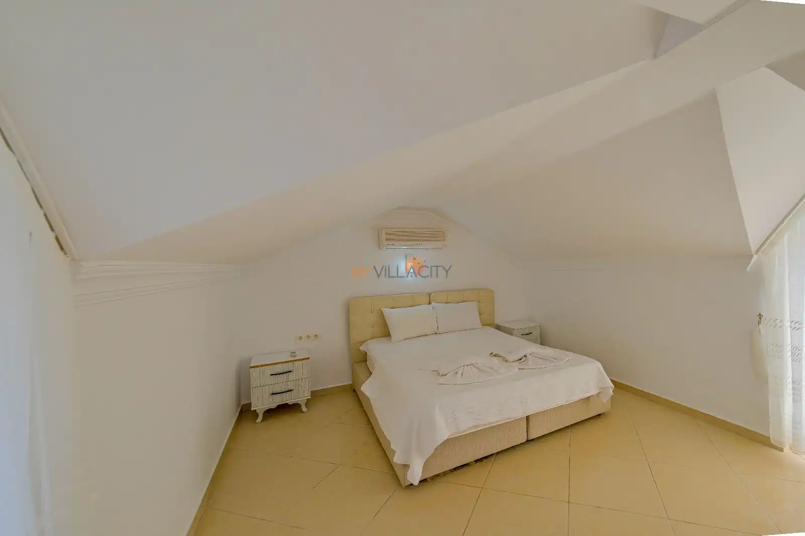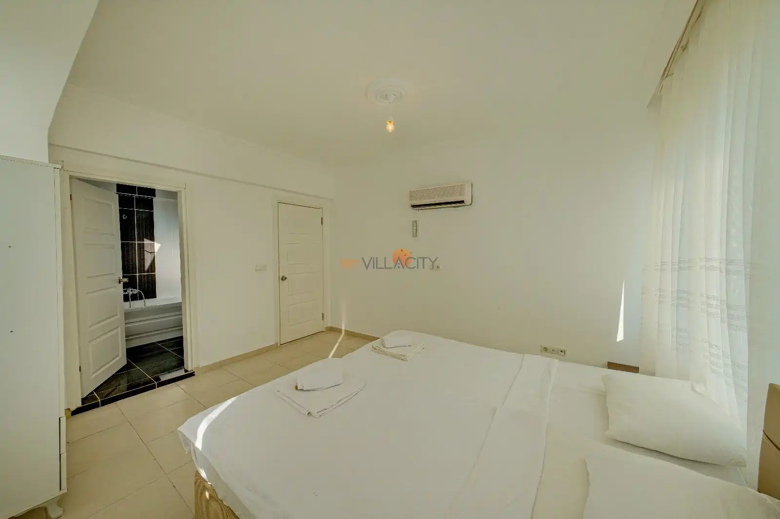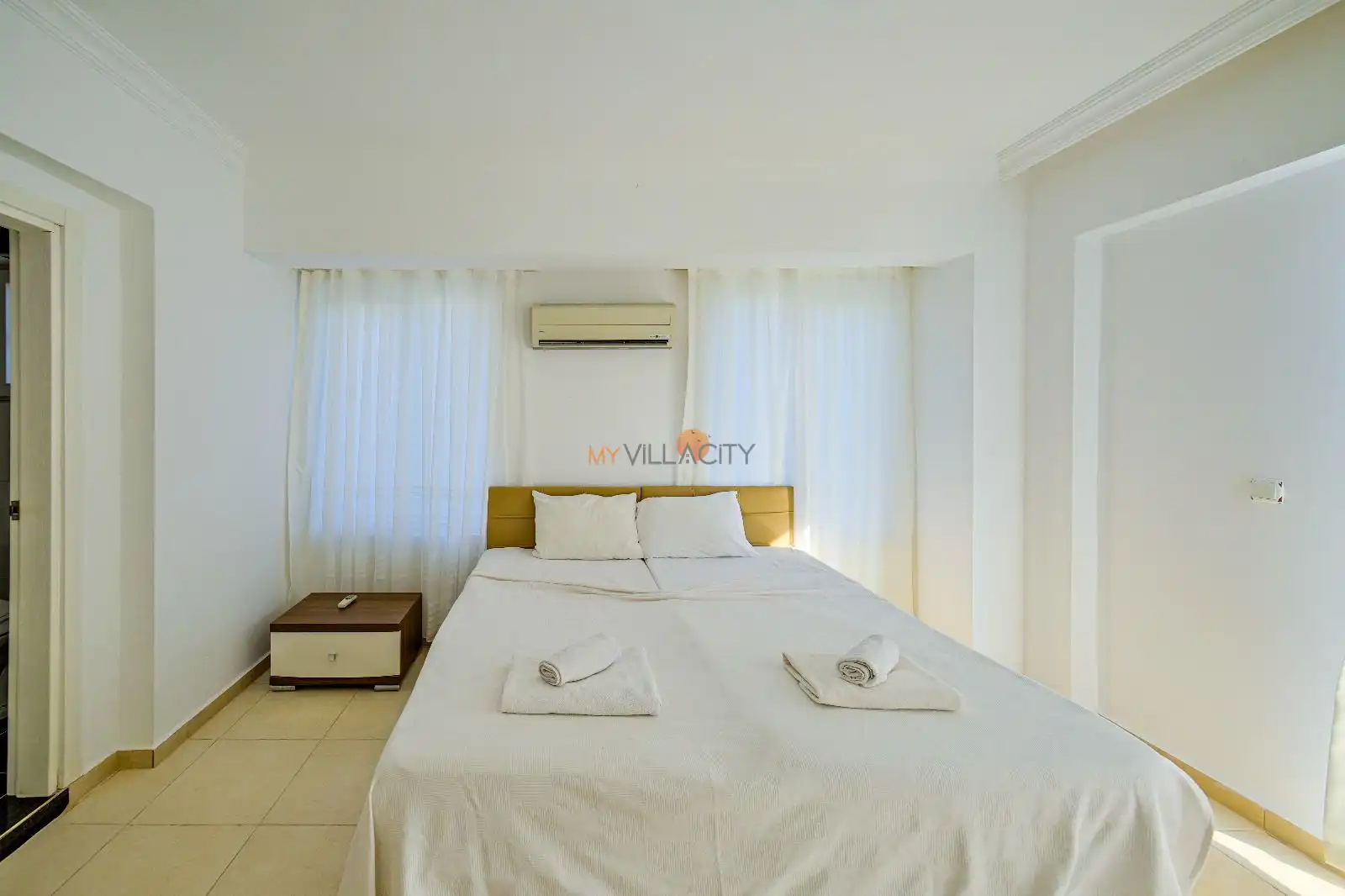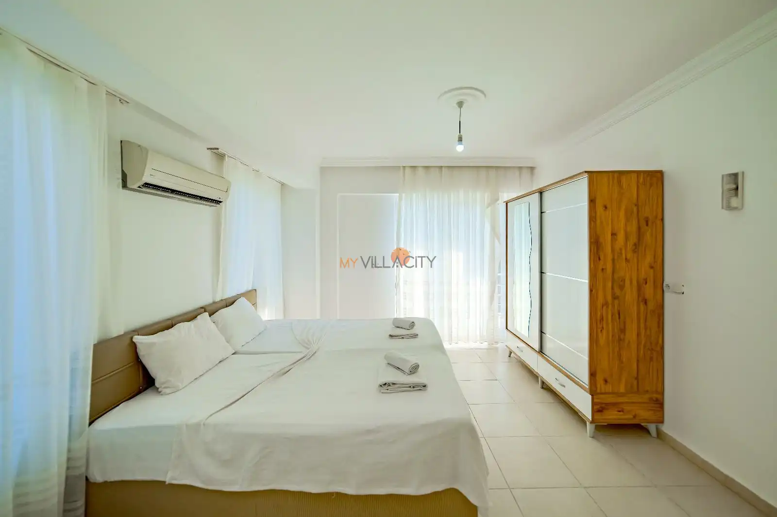 - 1 Çift Kişilik Yatak, 1 Banyo/WC, 2 Komodin, Elbise dolabı, Makyaj Masası, Klima,