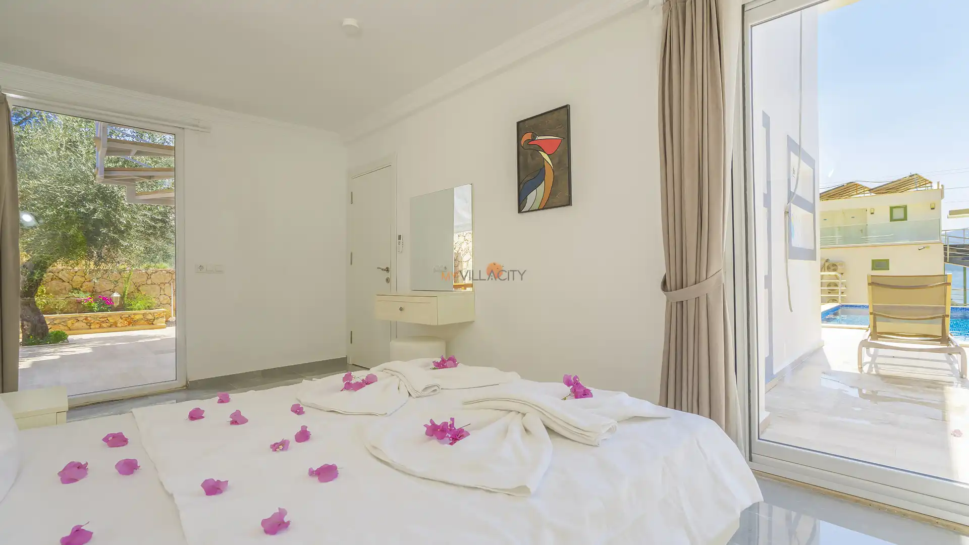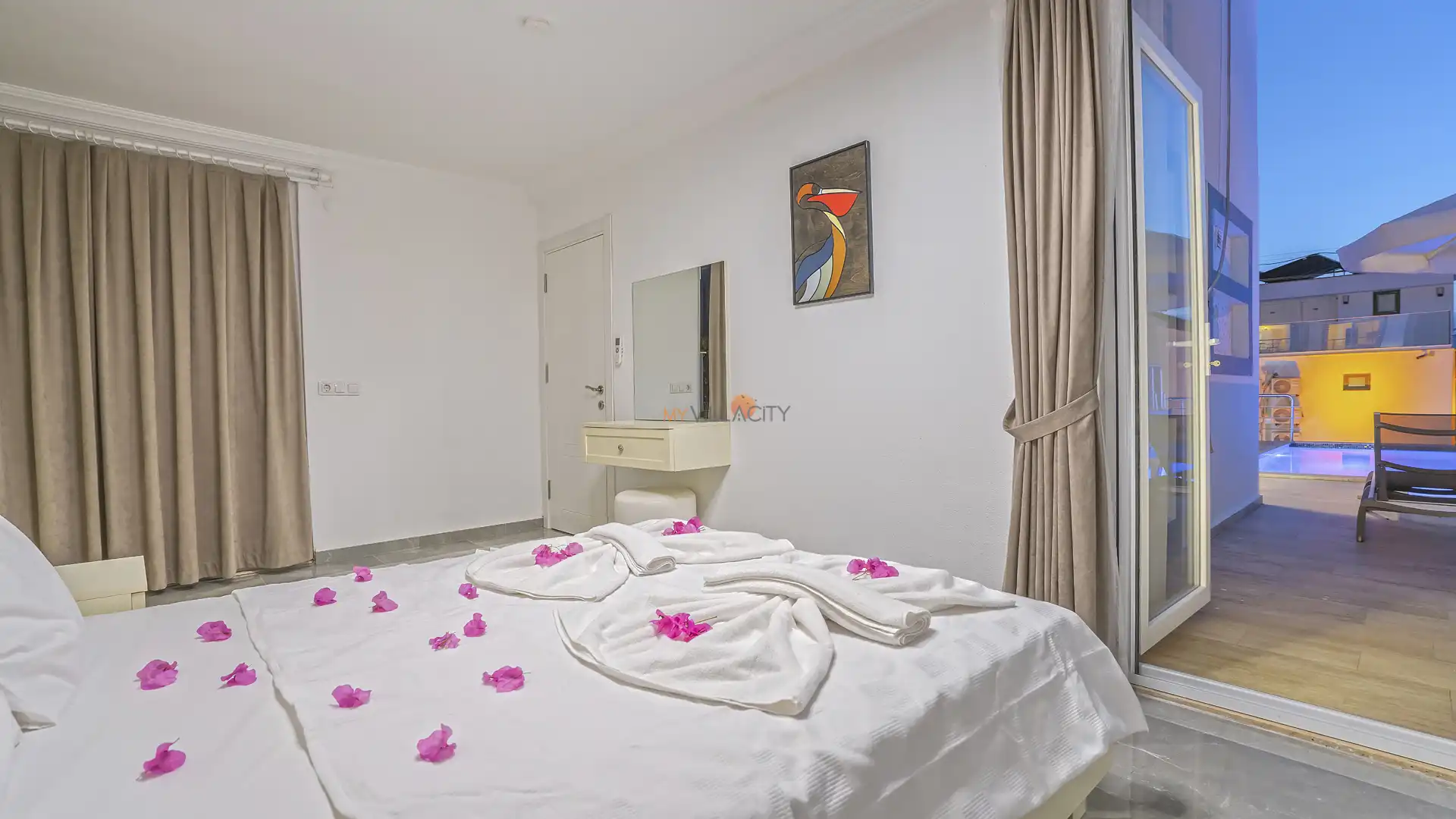 Myvillacity olarak misafirlerimizin konforunu ön planda tutuyor, villamızı sizlere temiz ve eksiksiz bir şekilde teslim ediyoruz. İki haftalık konaklamalarda ara temizlik hizmeti sağlanmakta olup, bu süreçte nevresim ve havlu değişimleri de gerçekleştirilmektedir. Elektrik, su ve gaz ücretleri konaklama fiyatına dahil olup, ekstra bir ücret talep edilmez.
