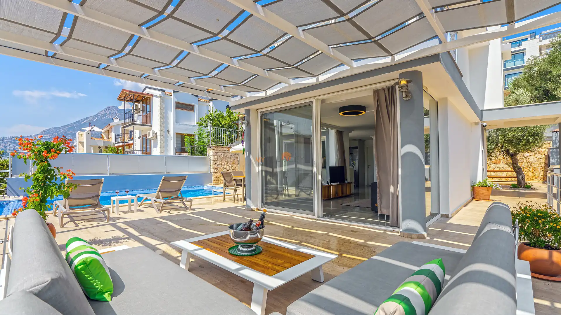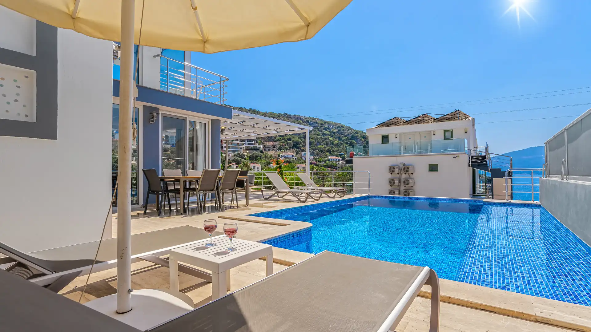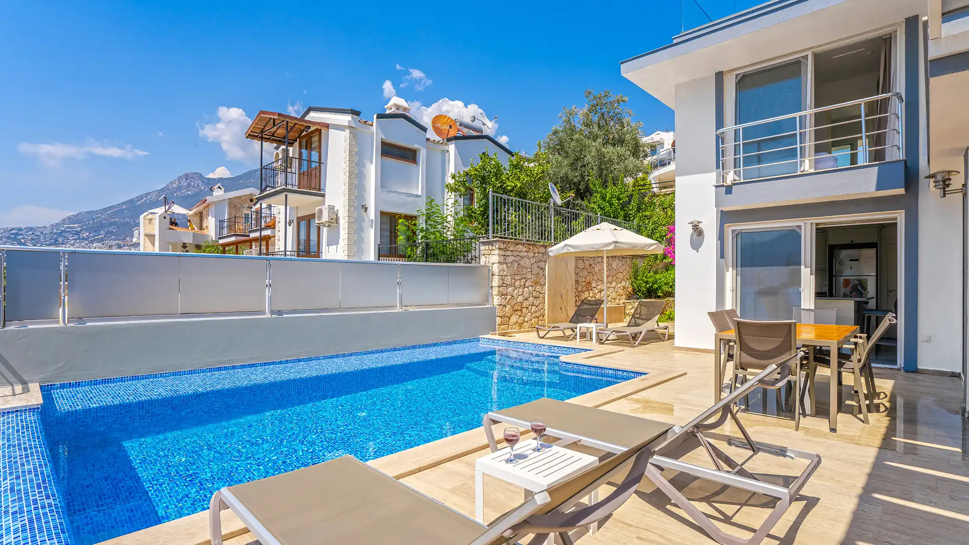 Villanın kendine ait özel bahçesi ve yüzme havuzu, tatilinizi tamamen size özel hale getirir. Bahçede yer alan barbekü alanı, yemek masası, sandalyeler, şezlonglar ve şemsiyeler sayesinde gün boyu keyifli vakit geçirebilir, sevdiklerinizle birlikte unutulmaz anlar yaşayabilirsiniz.