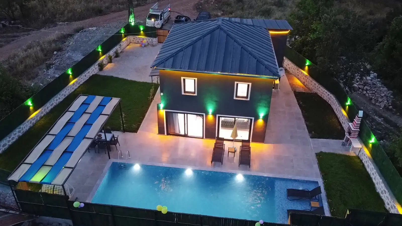 NOT: Doğanın içerisine konumlanmış olan tüm villalarda ve yazlık evlerde, kelebekler, böcekler, karıncalar, sinekler vb. gibi canlılara rastlama olasılığı bulunmaktadır. Bu duruma karşı düzenli ilaçlama yapılmaktadır. Bu not, sadece bu eve özgü değil, aynı zamanda doğanın içinde bulunan tüm evlerimiz için geçerlidir.