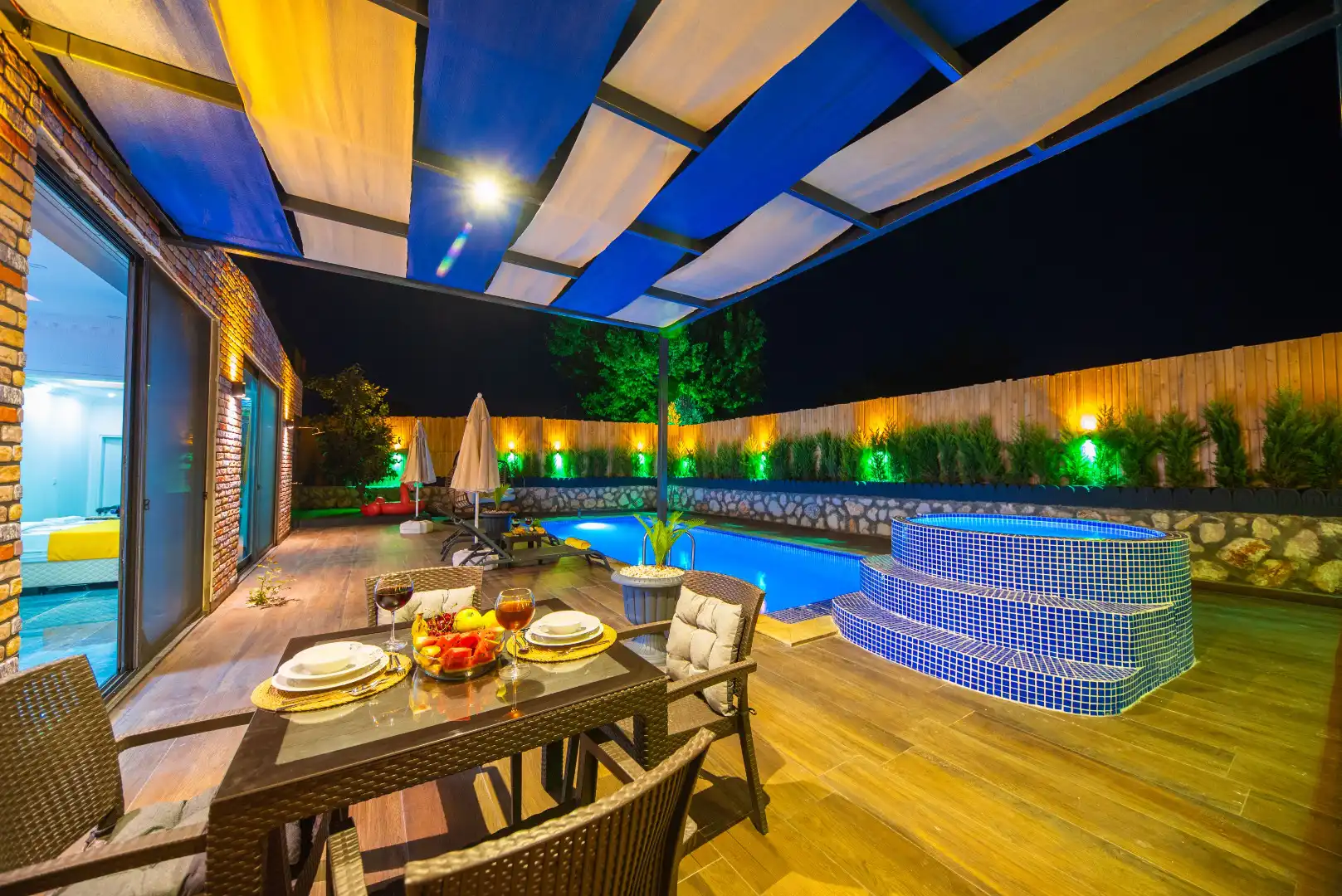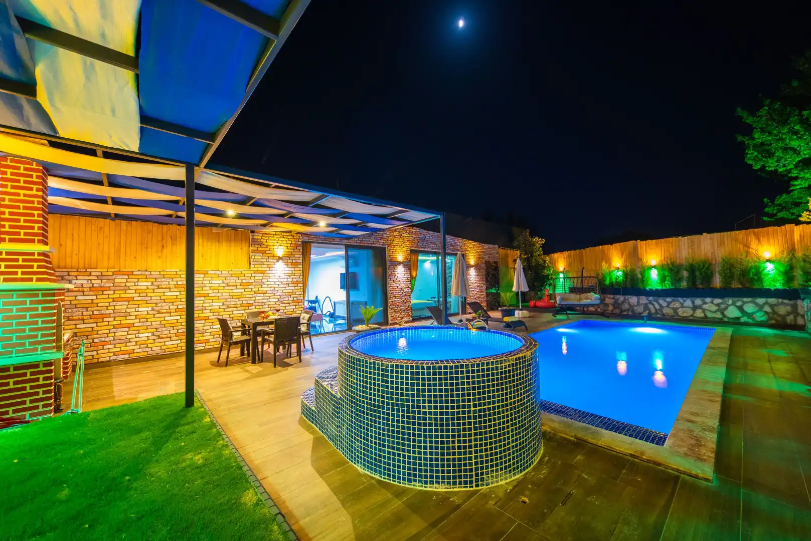 Villa Egemen Çavdır, Kalkan'ın Çavdır bölgesinde, özel havuz ve jakuzi sunan lüks bir balayı villasıdır. Tam donanımlı mutfak, geniş bahçe ve modern dekorasyonuyla unutulmaz bir tatil deneyimi vaat eder. Doğanın içinde konumlanması, sakin bir atmosferde dinlenmek ve yenilenmek isteyen çiftler için idealdir. Villa, doğal güzelliklerle çevrili olup, düzenli ilaçlama ile konforunuz düşünülmüştür.