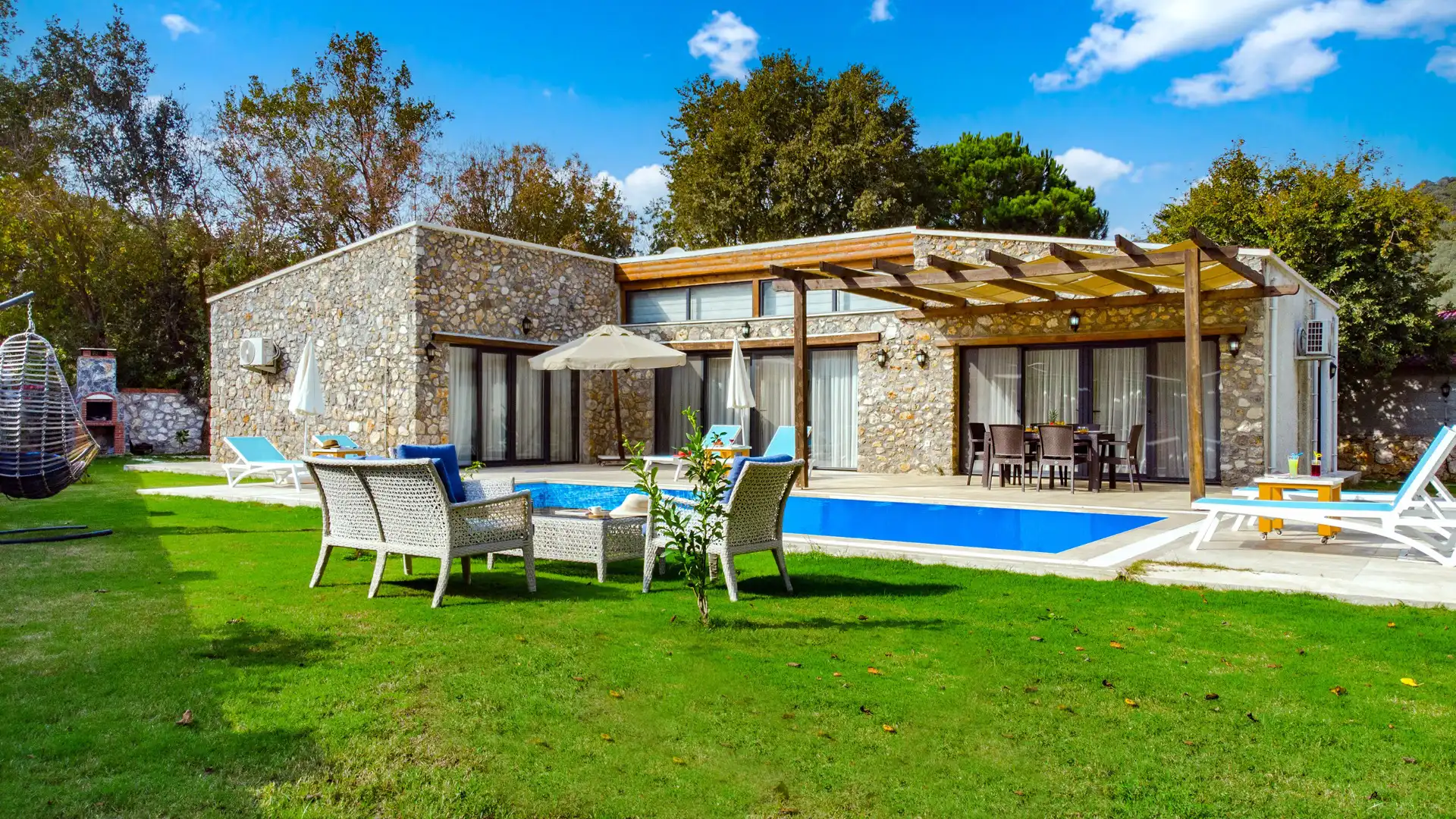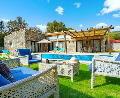 Villa Eterna Kayaköy , Kayaköy'ün muhteşem doğasına sırtını yaslamış, özel havuzlu ve modern donanımlı bir tatil villasıdır.Villamız şık dizaynı ile ön plana çıkmaktadır içerisinde . Aileler ve geniş aileler için mükemmel bir kaçış noktası sunan bu villa, Kaş ve Fethiye'nin tarihi ve doğal güzelliklerine kolay erişim sağlar. Tam donanımlı mutfak, geniş teraslar ve huzurlu bir bahçe, Villa Eterna Kayaköy kendi evinizdeki rahatlığı yaşayabileceğiniz bir yer haline getirir.