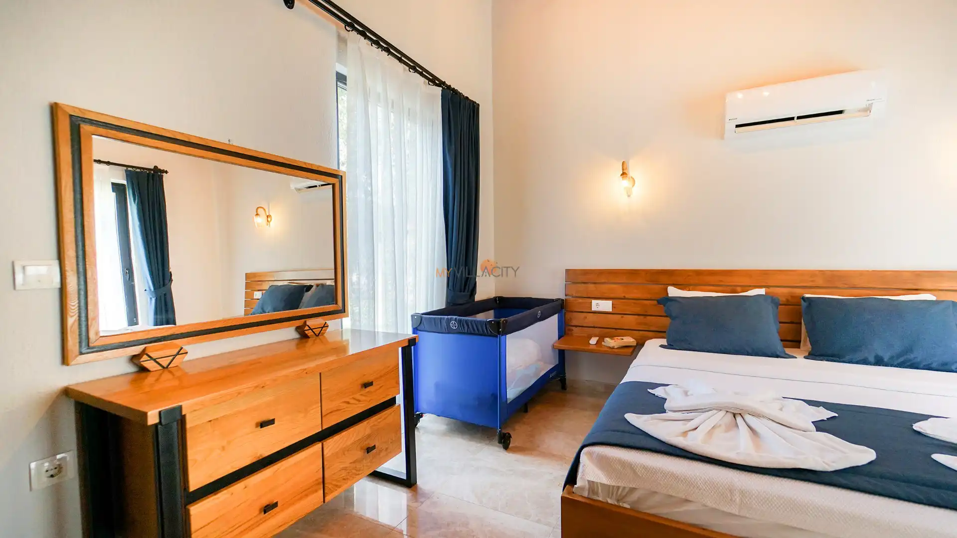 - 1 Çift Kişilik Yatak, 1 Banyo/WC, 2 Komodin, Elbise dolabı, Makyaj Masası, Klima,