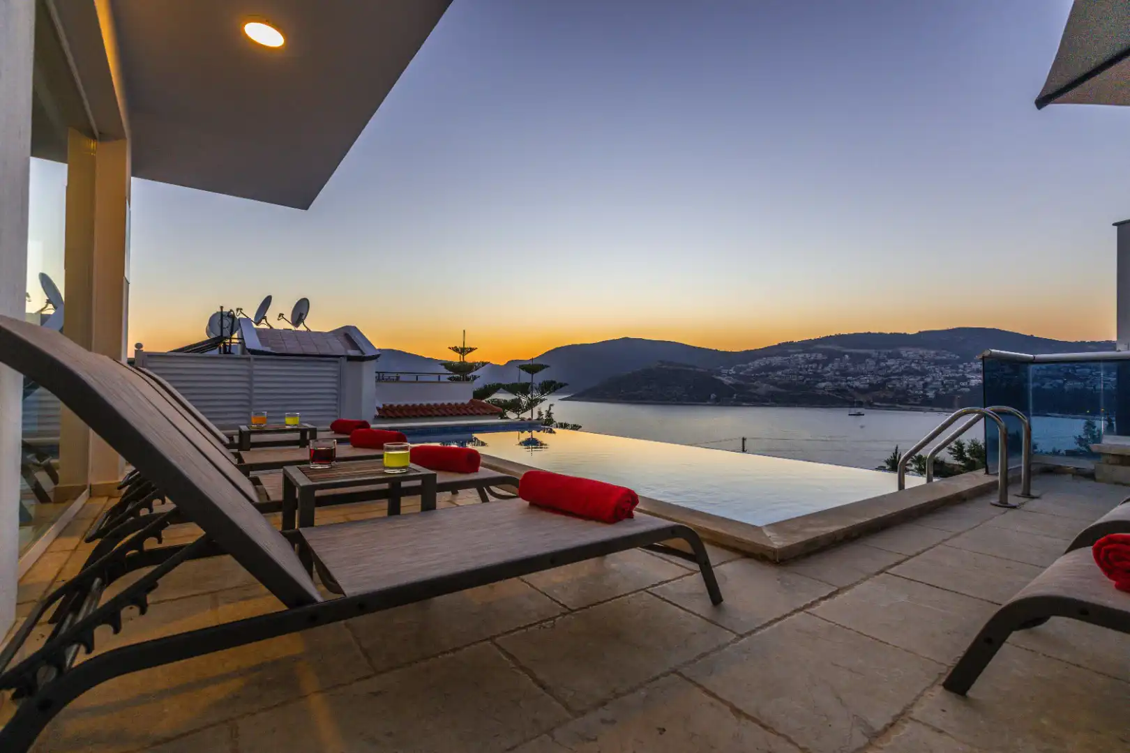 Kalkan'ın muhteşem Kışla bölgesinde yer alan Villa Everest, 8 misafir kapasitesi, jakuzi ve deniz manzarası ile unutulmaz bir tatil sunuyor. Havuz ısıtma seçeneği ile kış aylarında da keyifli bir tatil geçirebilirsiniz. Villa Everest, huzur ve lüks arayanlar için ideal bir seçenektir.