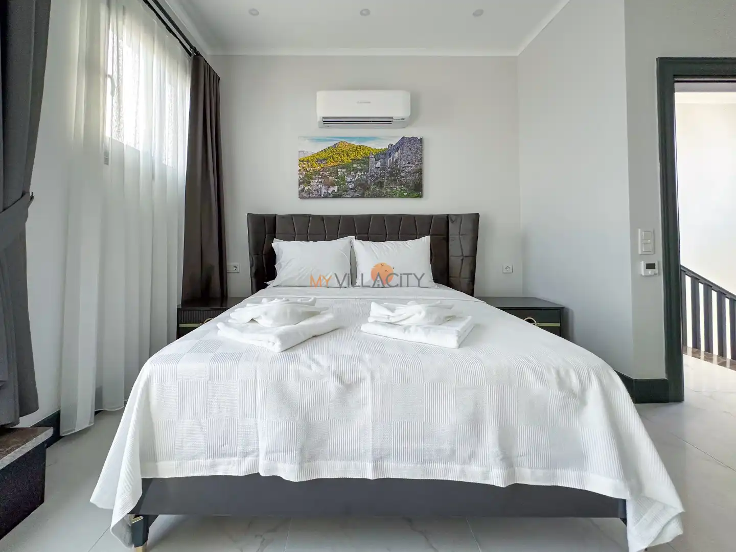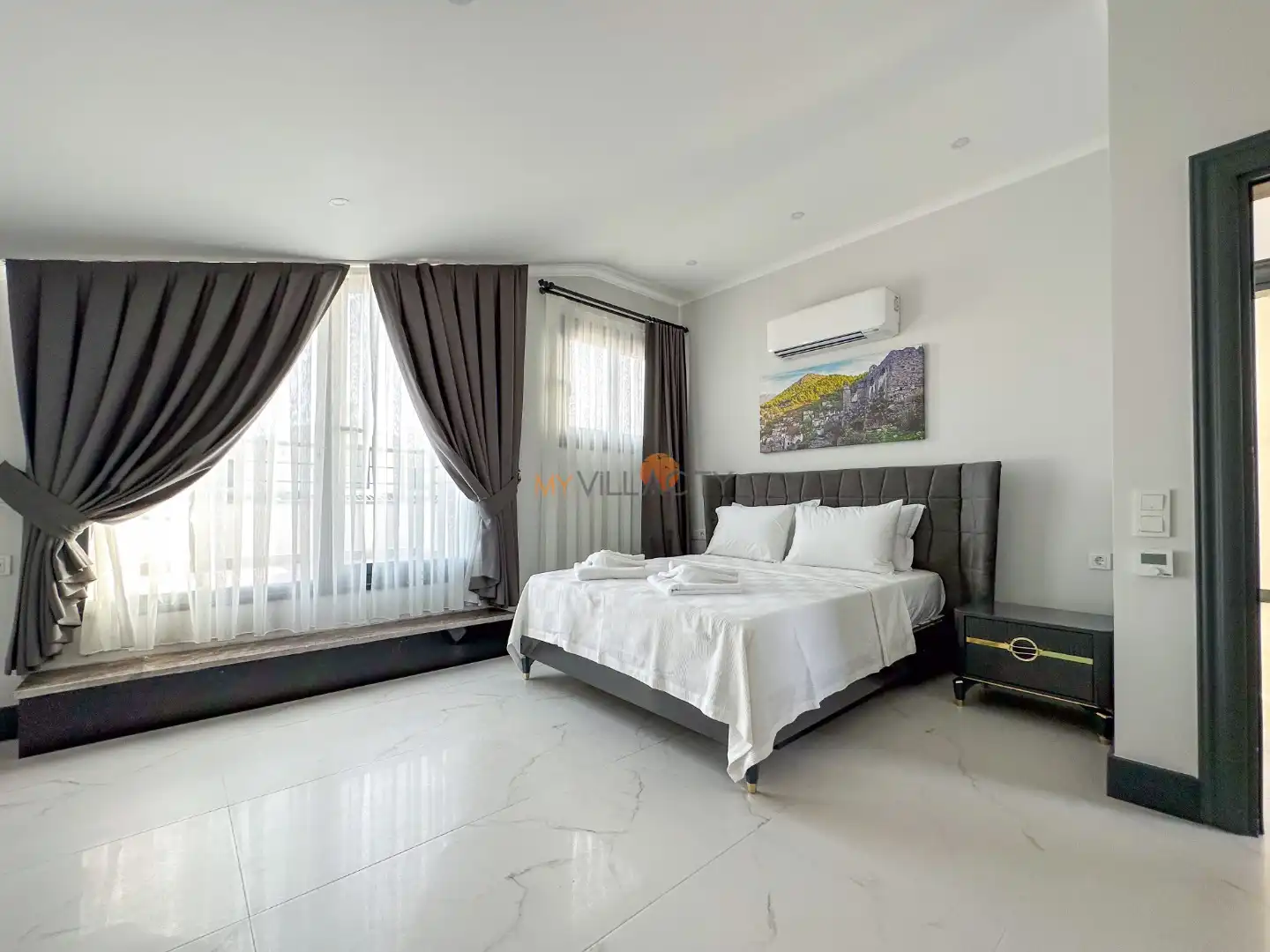 - 1 Çift Kişilik Yatak, 1 Banyo/WC, 2 Komodin, Elbise dolabı, Makyaj Masası, Klima,