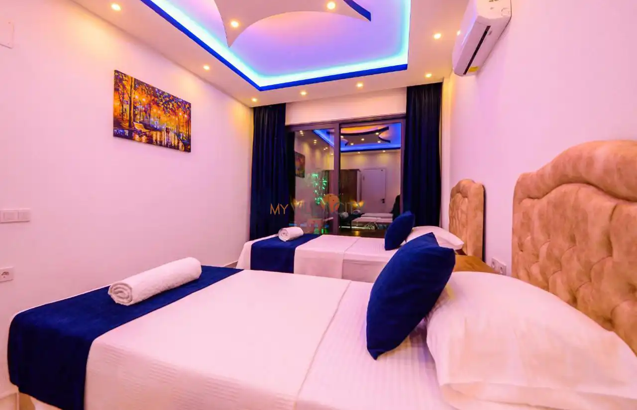- 2 Tek Kişilik Yatak, 1 Banyo/WC, 2 Komodin, Elbise dolabı, Makyaj Masası, Klima,