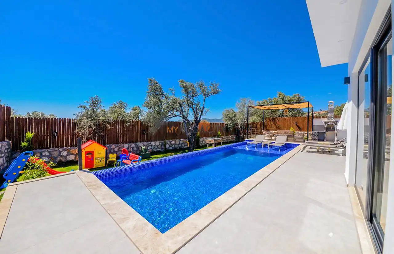 Villa Görkem, Kalkan'ın muhteşem doğasına sırtını yaslamış, özel havuzlu ve modern donanımlı bir tatil villasıdır.Villamız şık dizaynı ile ön plana çıkmaktadır içerisinde . Aileler ve Çekirdek aileler için mükemmel bir kaçış noktası sunan bu villa, Kaş ve Fethiye'nin tarihi ve doğal güzelliklerine kolay erişim sağlar. Tam donanımlı mutfak, geniş teraslar ve huzurlu bir bahçe, Villa Görkem kendi evinizdeki rahatlığı yaşayabileceğiniz bir yer haline getirir.
