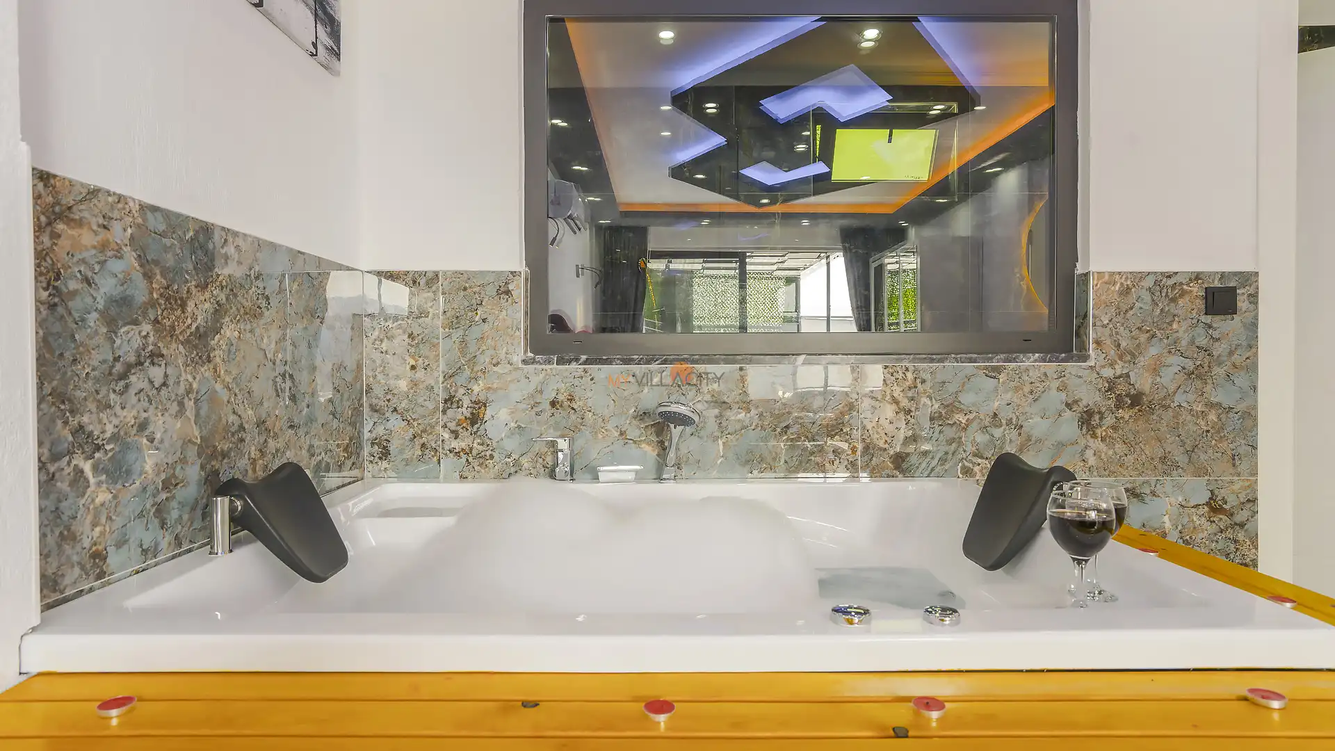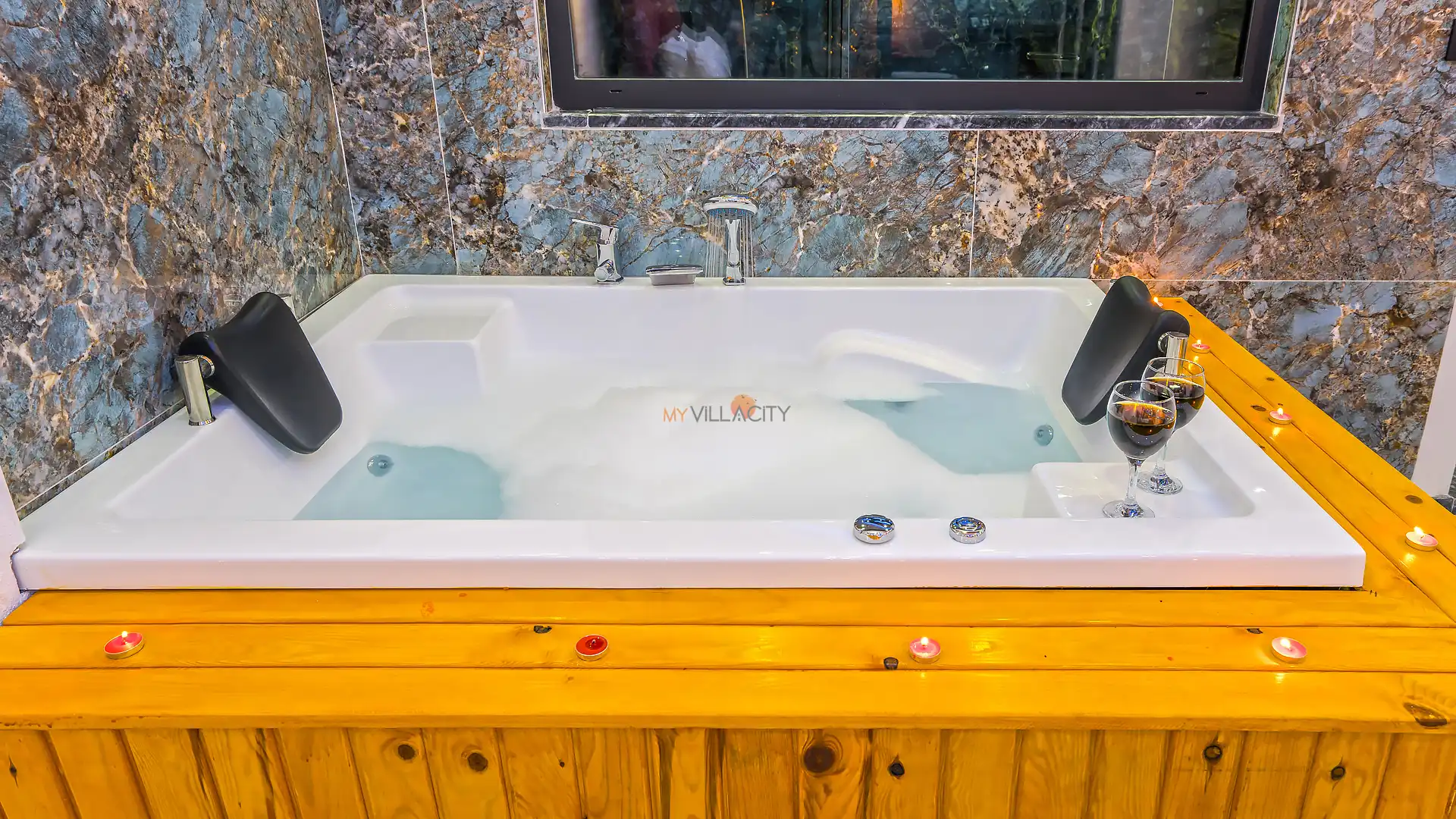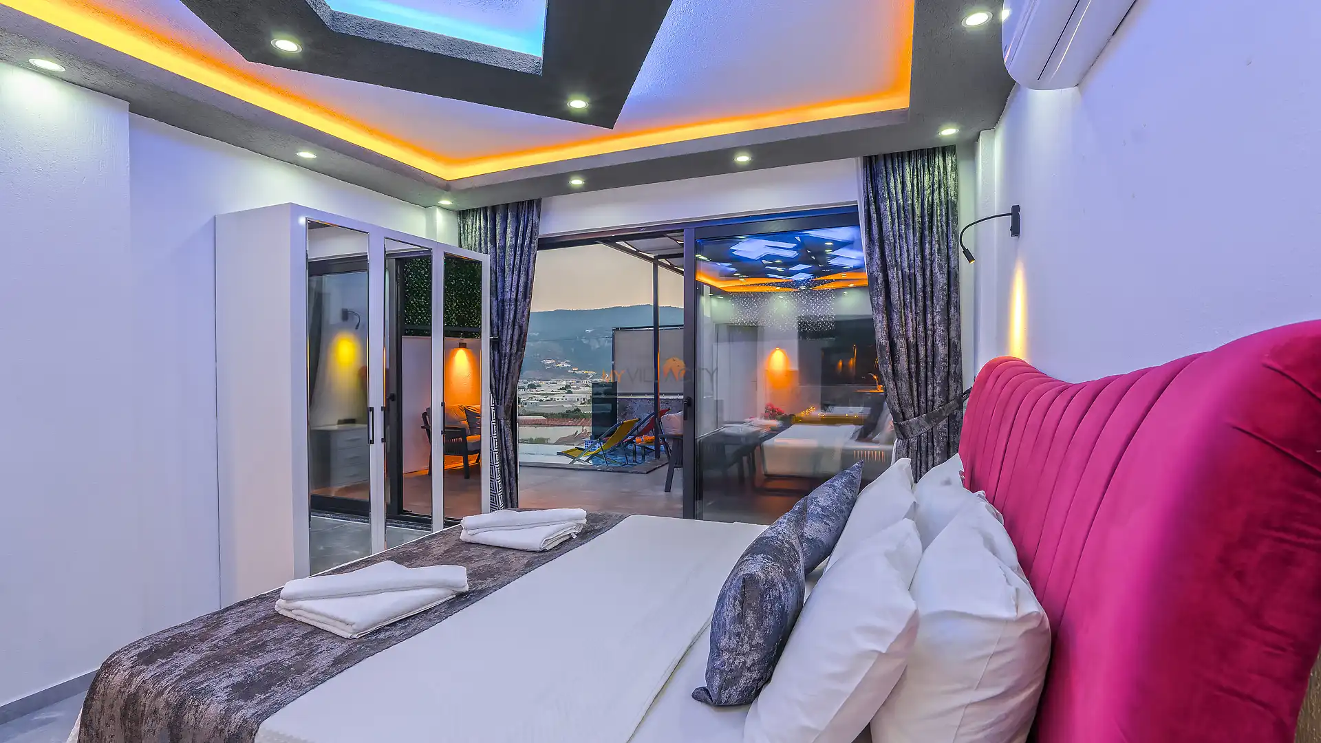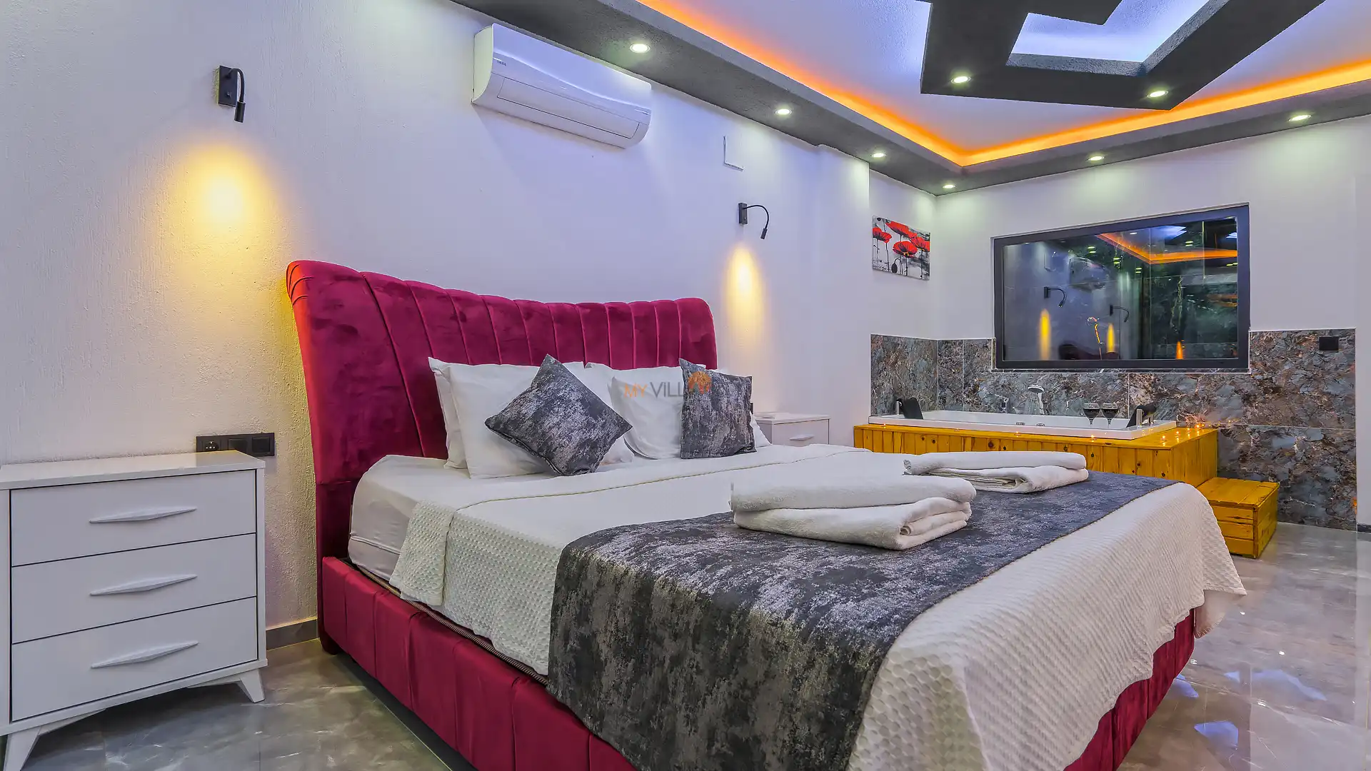 - 1 Çift Kişilik Yatak, 1 Jakuzi, 1 Banyo/WC, 2 Komodin, Elbise dolabı, Makyaj Masası, Klima,