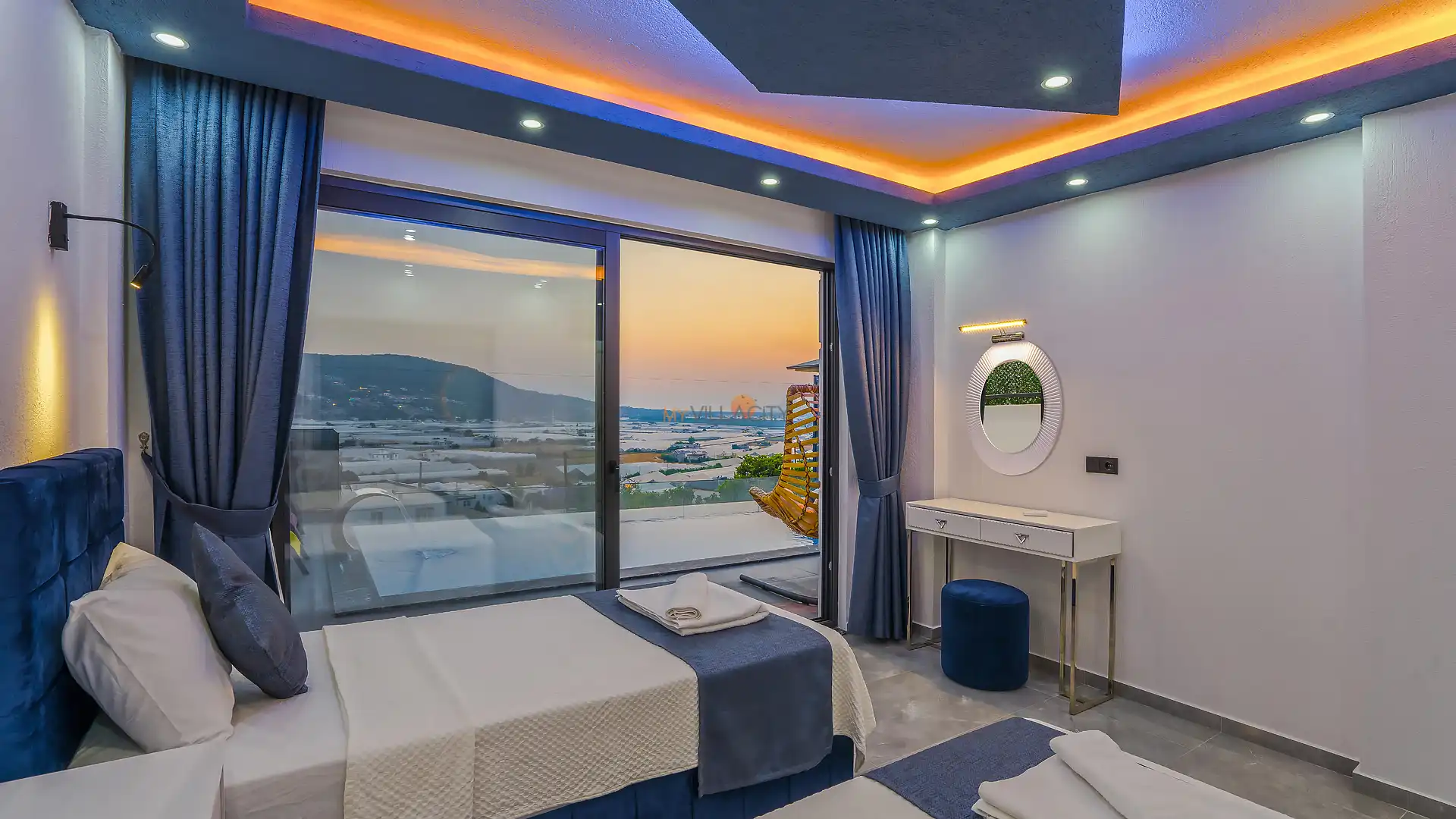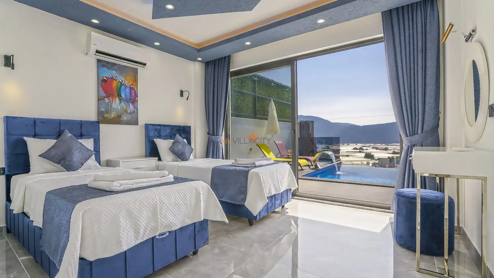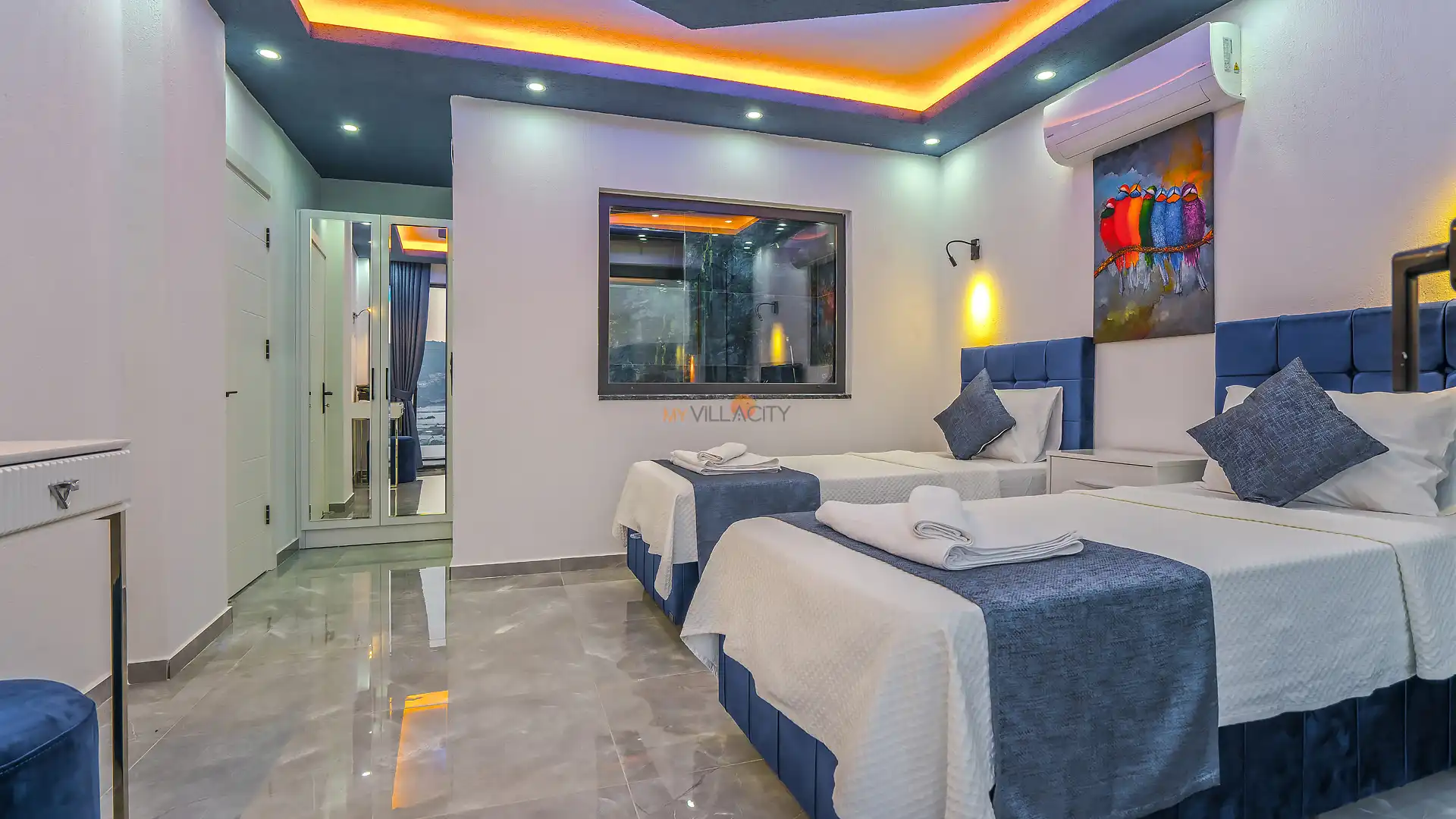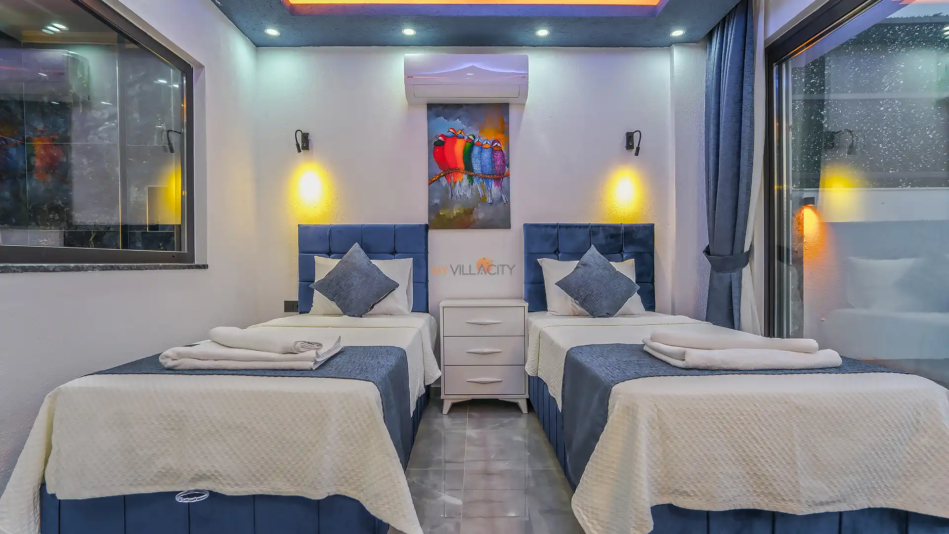 - 2 Tek Kişilik Yatak, 1 Banyo/WC, 2 Komodin, Elbise dolabı, Makyaj Masası, Klima,