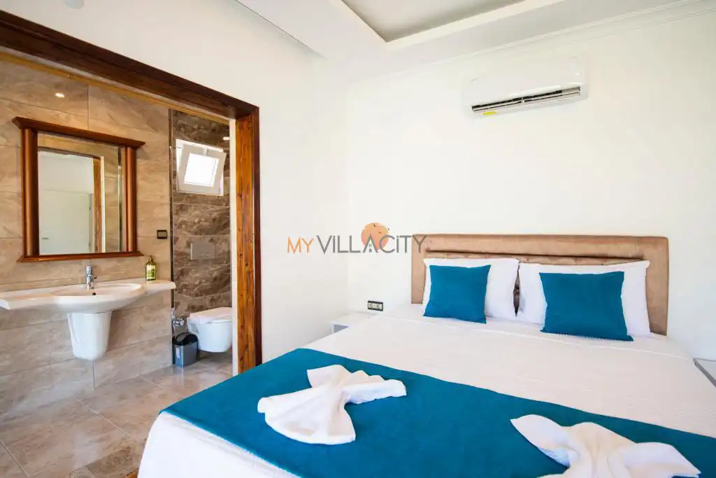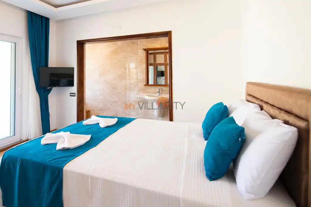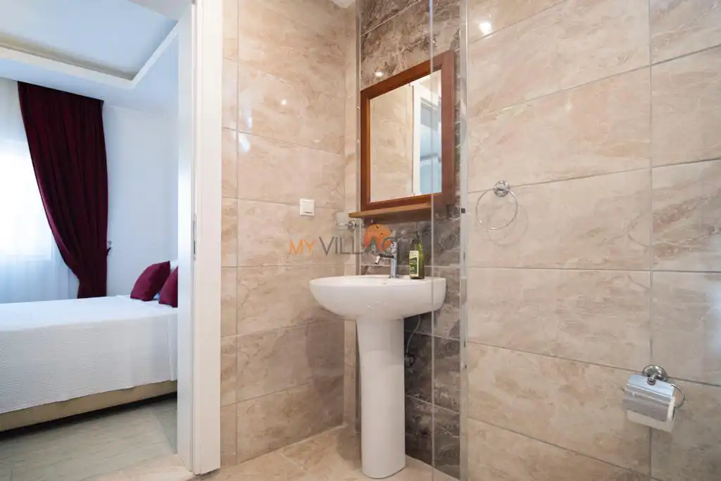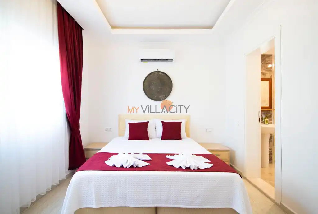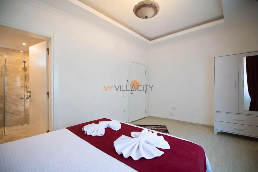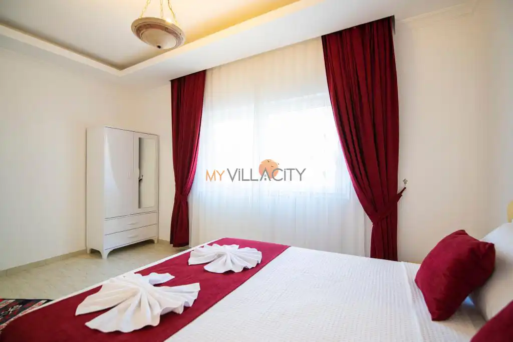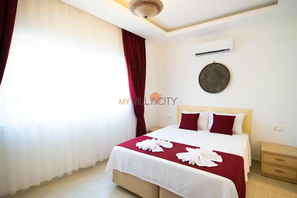 - 1 Çift Kişilik Yatak, 1 Banyo/WC, 2 Komodin, Elbise dolabı, Makyaj Masası, Klima,