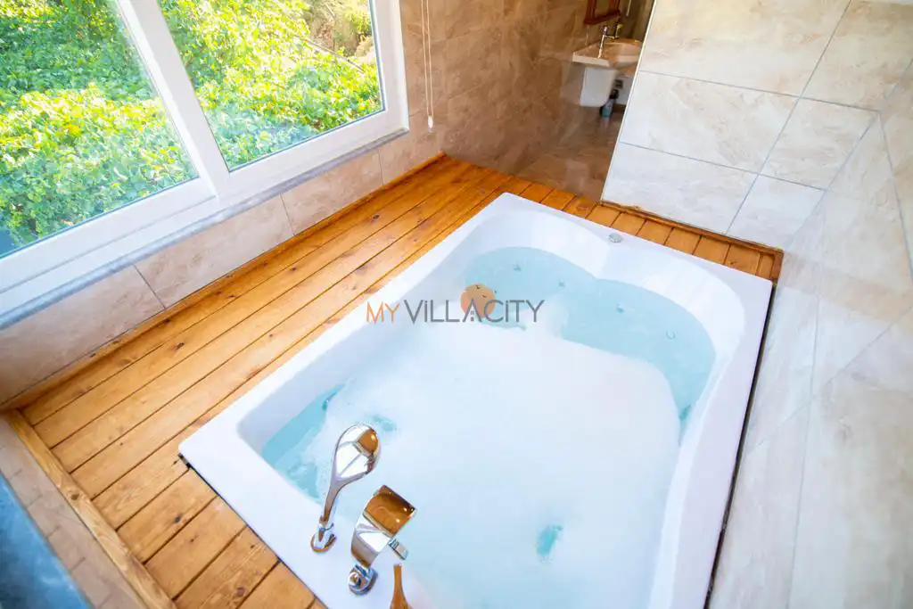 - 1 Çift Kişilik Yatak, 1 Jakuzi, 1 Banyo/WC, TV, 2 Komodin, Elbise dolabı, Makyaj Masası, Klima,