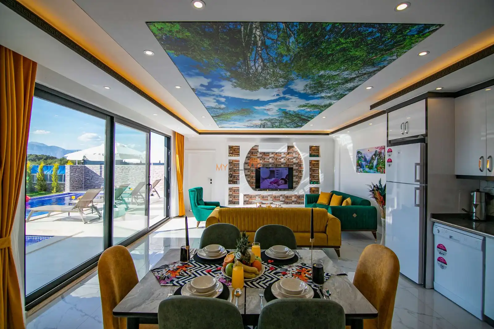 NOT: Doğanın içerisine konumlanmış olan tüm villalarda ve yazlık evlerde, kelebekler, böcekler, karıncalar, sinekler vb. gibi canlılara rastlama olasılığı bulunmaktadır. Bu duruma karşı düzenli ilaçlama yapılmaktadır. Bu not, sadece bu eve özgü değil, aynı zamanda doğanın içinde bulunan tüm evlerimiz için geçerlidir.