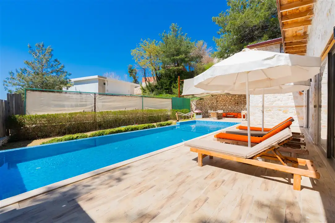 Villa Mabeyn ; Kalkan İslamlar mevkisinde yer alan muhafazakar villamızdır. Geniş bahçesinde özel yüzme havuzu, çocuk havuzu, rahat şezlonglar ve mangal alanı bulunmaktadır. Mahremiyete önem verilen villamızın bahçesi korunaklı yapıdadır. Mimarisinde modern taş yapı kullanılan villamız sizin için özenle dizayn edilmiştir. Ferah salonunda modern Amerikan mutfağı, konforlu mobilyalar ve bir adet langırt bulunmaktadır. Tüm odaları tam donanıma sahip villamızda ruhunuzu ve bedeninizi dinlendirebileceğiniz bir adet jakuzi bulunmaktadır. Şehrin gürültüsünden uzak bir tatil isteyen siz değerli misafirlerimizi sabırsızlıkla bekliyoruz.