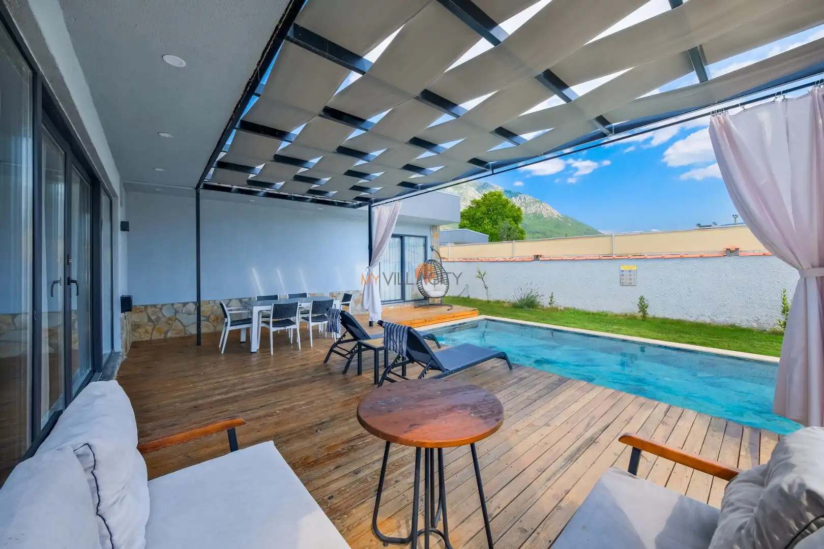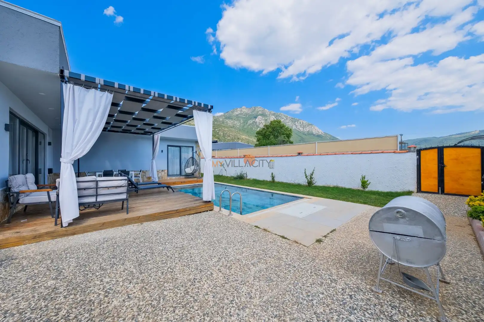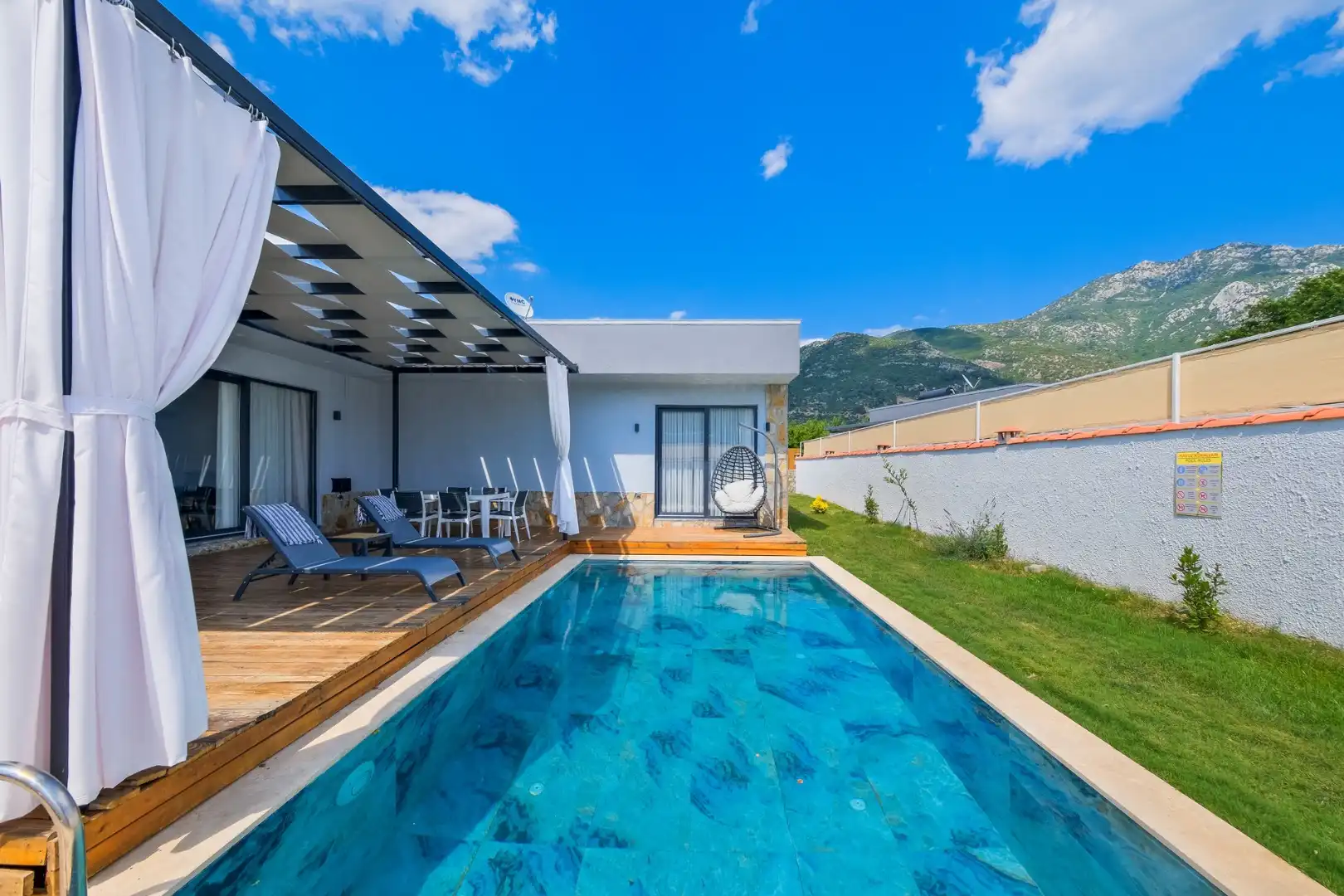 Villa Merlot Üzümlü, Muğla Fethiye Bölgesinde yer alan muhteşem bir tatil villasıdır. Bu villa, 2 yatak odası ve 4 kişilik kapasiteye sahiptir. Özellikle muhafazakar aileler ve balayı çiftlerimiz için ideal bir seçenektir. Havuz alanı tamamen korunaklıdır ve misafirlerin mahremiyetine önem verilmektedir. Yatak odasında özel banyo ve tuvalet bulunmaktadır.. Villamızın lüks ve konforlu tasarımı göz kamaştırmaktadır. Havuz terasımız oldukça geniştir ve bu alanda keyifli vakit geçirebilirsiniz.Modern mobilyaları,şık dekarasyonu,modern ile ön plana çıkmaktadır. İhtiyaç duyabileceğiniz tüm temel araç ve gereçler villada mevcuttur. Doğayla iç içe, sakin ve huzurlu bir tatil isteyen misafirlerimiz için mükemmel bir seçimdir.Unutulmaz bir tatil içim Villa Merlot Üzümlü ,tam da bunun için var.