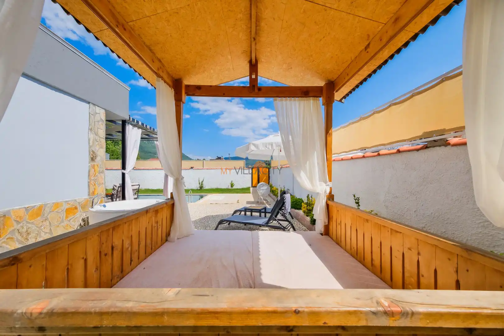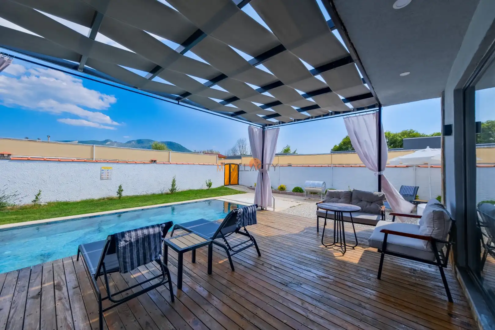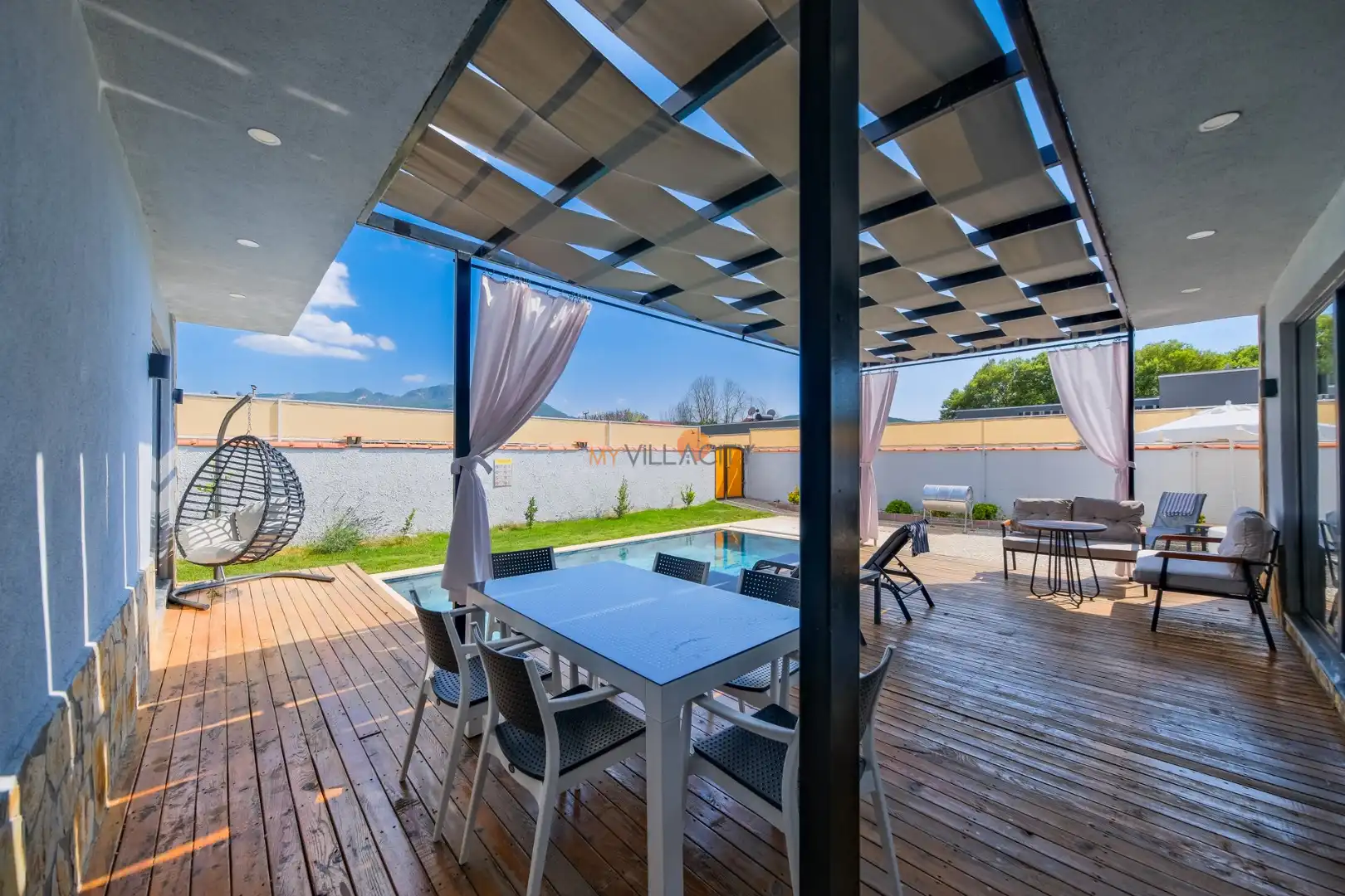Villa Merlot Üzümlü, Muğla Fethiye Bölgesinde yer alan muhteşem bir tatil villasıdır. Bu villa, 2 yatak odası ve 4 kişilik kapasiteye sahiptir. Özellikle muhafazakar aileler ve balayı çiftlerimiz için ideal bir seçenektir. Havuz alanı tamamen korunaklıdır ve misafirlerin mahremiyetine önem verilmektedir. Yatak odasında özel banyo ve tuvalet bulunmaktadır.. Villamızın lüks ve konforlu tasarımı göz kamaştırmaktadır. Havuz terasımız oldukça geniştir ve bu alanda keyifli vakit geçirebilirsiniz.Modern mobilyaları,şık dekarasyonu,modern ile ön plana çıkmaktadır. İhtiyaç duyabileceğiniz tüm temel araç ve gereçler villada mevcuttur. Doğayla iç içe, sakin ve huzurlu bir tatil isteyen misafirlerimiz için mükemmel bir seçimdir.Unutulmaz bir tatil içim Villa Merlot Üzümlü ,tam da bunun için var.
