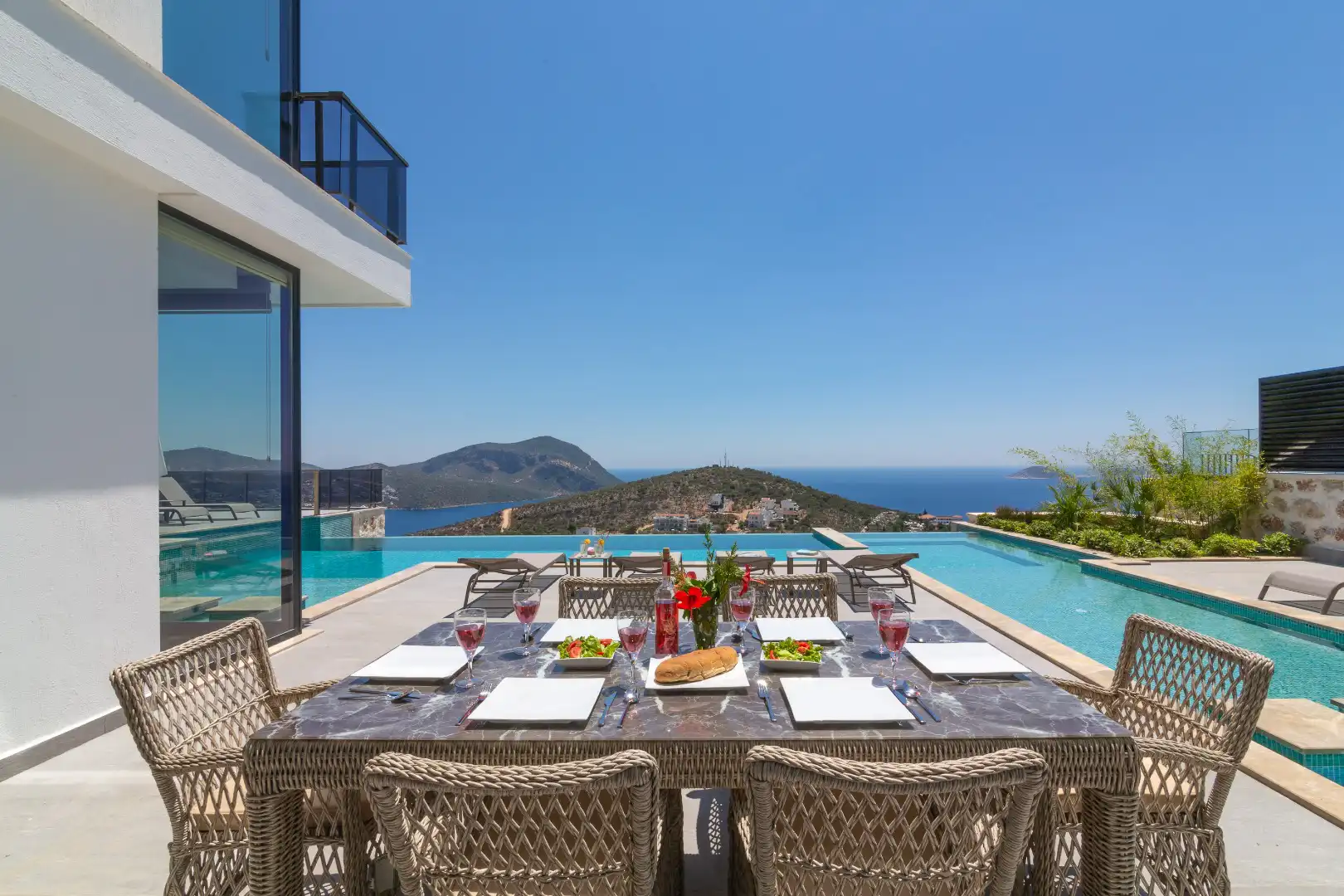 Villa Mirada 1, Kalkan Kalamar Bölgesinde yer alan muhteşem bir tatil villasıdır. Bu villa, 5 yatak odası ve 10 kişilik kapasiteye sahiptir. Özellikle muhafazakar aileler ve geniş aileler,kalabalık gruplar için ideal bir seçenektir. Havuz alanı tamamen korunaklıdır ve misafirlerin mahremiyetine önem verilmektedir. Her yatak odasında özel banyo ve tuvalet bulunmaktadır. Villamızın lüks ve konforlu tasarımı göz kamaştırmaktadır. Havuz terasımız oldukça geniştir ve bu alanda keyifli vakit geçirebilirsiniz Ayrıca villamız, muhteşem deniz manzarası sunmaktadır.Modern mobilyaları,şık dekarasyonu,şık dizaynırı ile ön plana çıkmaktadır. İhtiyaç duyabileceğiniz tüm temel araç ve gereçler villada mevcuttur. Doğayla iç içe, sakin ve huzurlu bir tatil isteyen misafirlerimiz için mükemmel bir seçimdir.Tatilin ve konforun en unutulmaz tadını çıkarabileceğiniz Villa Mirada 1 tam da burada