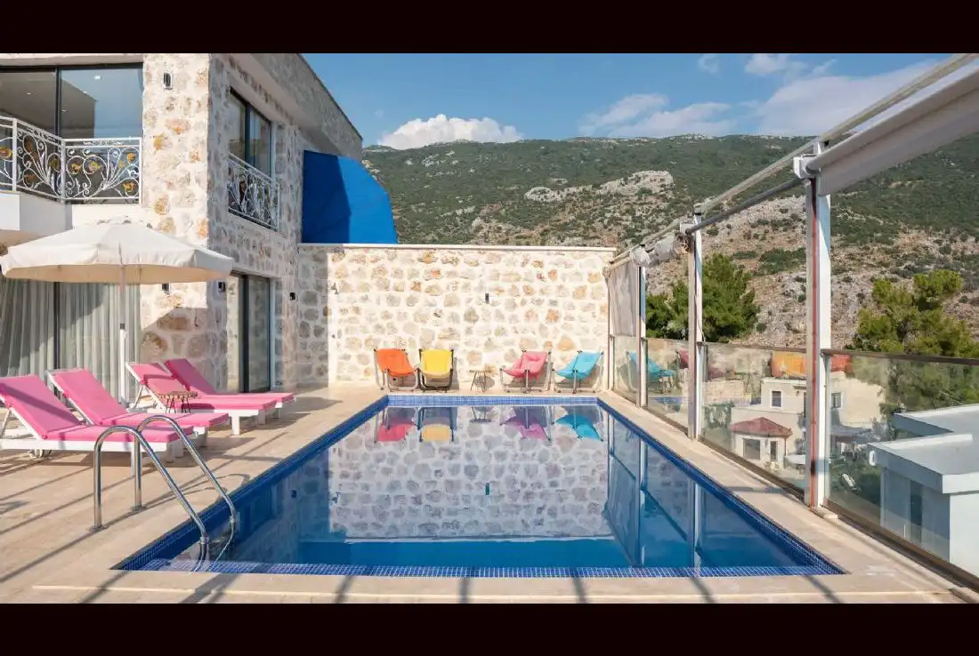 Villa Narin 3; Kalkan İslamlar Bölgesi'nde yer alan muhafazakar ve lüks bir tatil imkanı sunan villa seçeneklerimizdendir. Doğa içerisindeki şehrin gürültüsünden uzak konumu ile huzurlu bir tatil olanağı sunmaktadır. Yeşilliklerle dolu geniş bahçesi tatilinizin keyfini üst düzeye çıkaran bir donanıma sahiptir. Geniş yüzme havuzu, şezlonglar, salıncak ve mangal alanı bahçe içerisinde konumlanmıştır. Villamızın mimarisinde yoğun ilgi gören taş yapı kullanılmıştır. Tüm odalarında kendinizi evinizde hissedeceğiniz huzurlu bir ortam bulunmaktadır. Salonu kaliteli mobilyalarla dizayn edilen villamızın modern ve tam donanımlı bir açık mutfağı bulunmaktadır. Ev sıcaklığında konforlu bir tatil için sizleri bekliyoruz.
