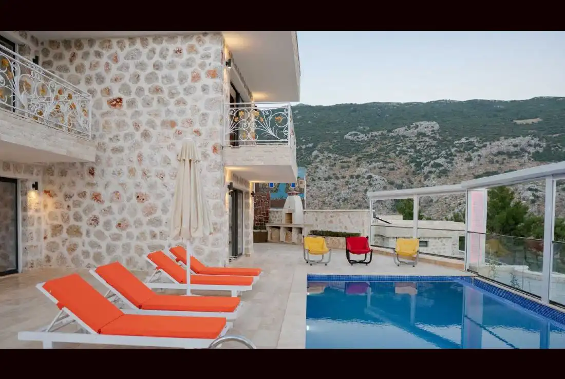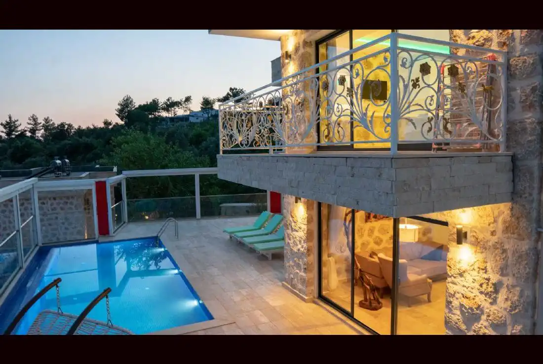 Villa Narin 6; Kalkan İslamlar Bölgesi'nde yer alan muhafazakar ve lüks bir tatil imkanı sunan villa seçeneklerimizdendir. Doğa içerisindeki şehrin gürültüsünden uzak konumu ile huzurlu bir tatil olanağı sunmaktadır. Villamızın geniş bahçe alanında size özel yüzme havuzu, sığ havuz, mangal alanı ve şezlonglar bulunmaktadır. Mimarisindeki modern taş yapı ile büyüleyen villamızın iç dekorasyonunda şık ve kaliteli mobilyalar kullanılmıştır. Her odası tam donanıma sahip villamızın size yaşattığı konfor ile tatilinizin keyfi üst seviyelere taşınacaktır. Ayrıca villamızda kış tatilinin vazgeçilmezi kapalı ısıtmalı havuz bulunmaktadır. Balayı çiftlerinin ve çekirdek ailelerin yoğun ilgi gösterdiği villamızda siz değerli misafirlerimize keyifli tatiller dileriz.