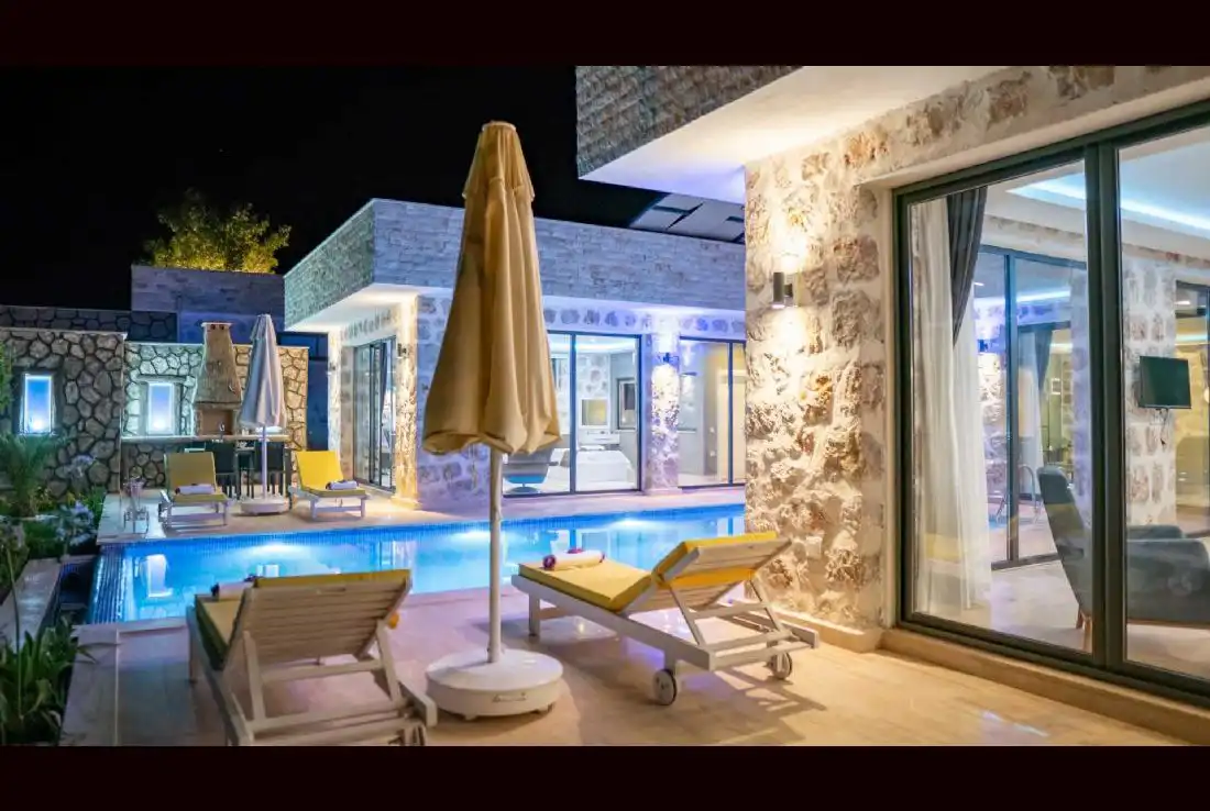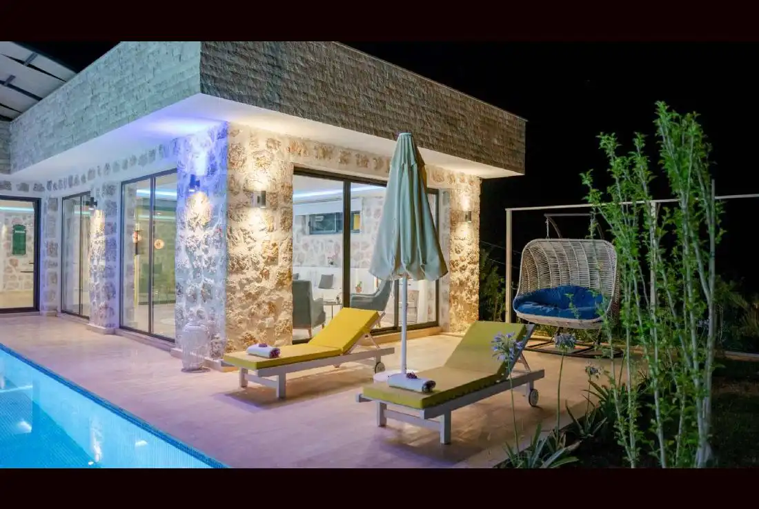 Villa Narin 7; Kalkan İslamlar Bölgesi'nde yer alan muhafazakar ve lüks bir tatil imkanı sunan villa seçeneklerimizdendir. Doğa içerisindeki şehrin gürültüsünden uzak konumu ile huzurlu bir tatil olanağı sunmaktadır. Villamızın geniş bahçe alanında size özel yüzme havuzu, sığ havuz, mangal alanı ve şezlonglar bulunmaktadır. Mimarisindeki modern taş yapı ile büyüleyen villamızın iç dekorasyonunda şık ve kaliteli mobilyalar kullanılmıştır. Her odası tam donanıma sahip villamızın size yaşattığı konfor ile tatilinizin keyfi üst seviyelere taşınacaktır. Ayrıca villamızda kış tatilinin vazgeçilmezi kapalı ısıtmalı havuz bulunmaktadır. Balayı çiftlerinin ve çekirdek ailelerin yoğun ilgi gösterdiği villamızda siz değerli misafirlerimize keyifli tatiller dileriz.