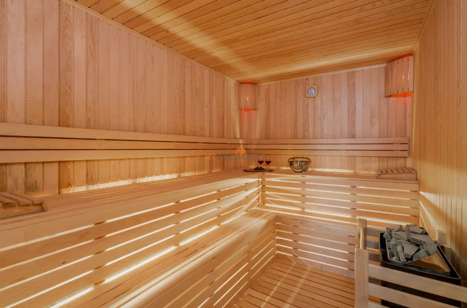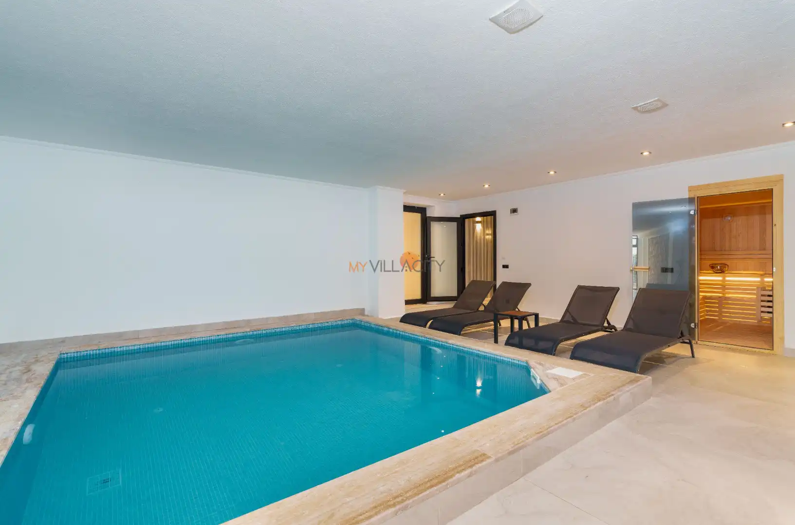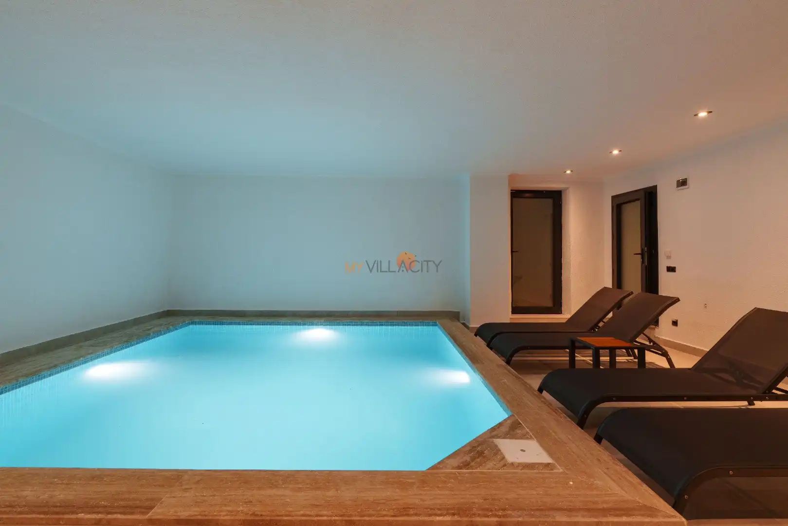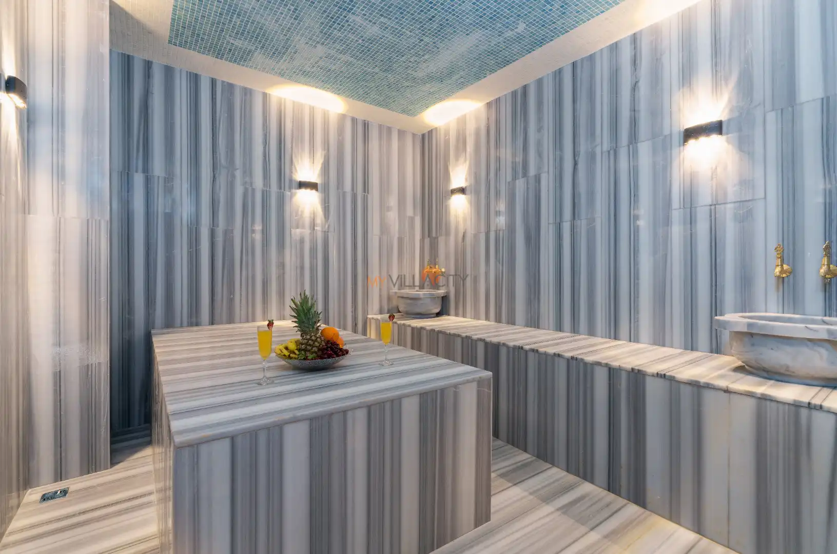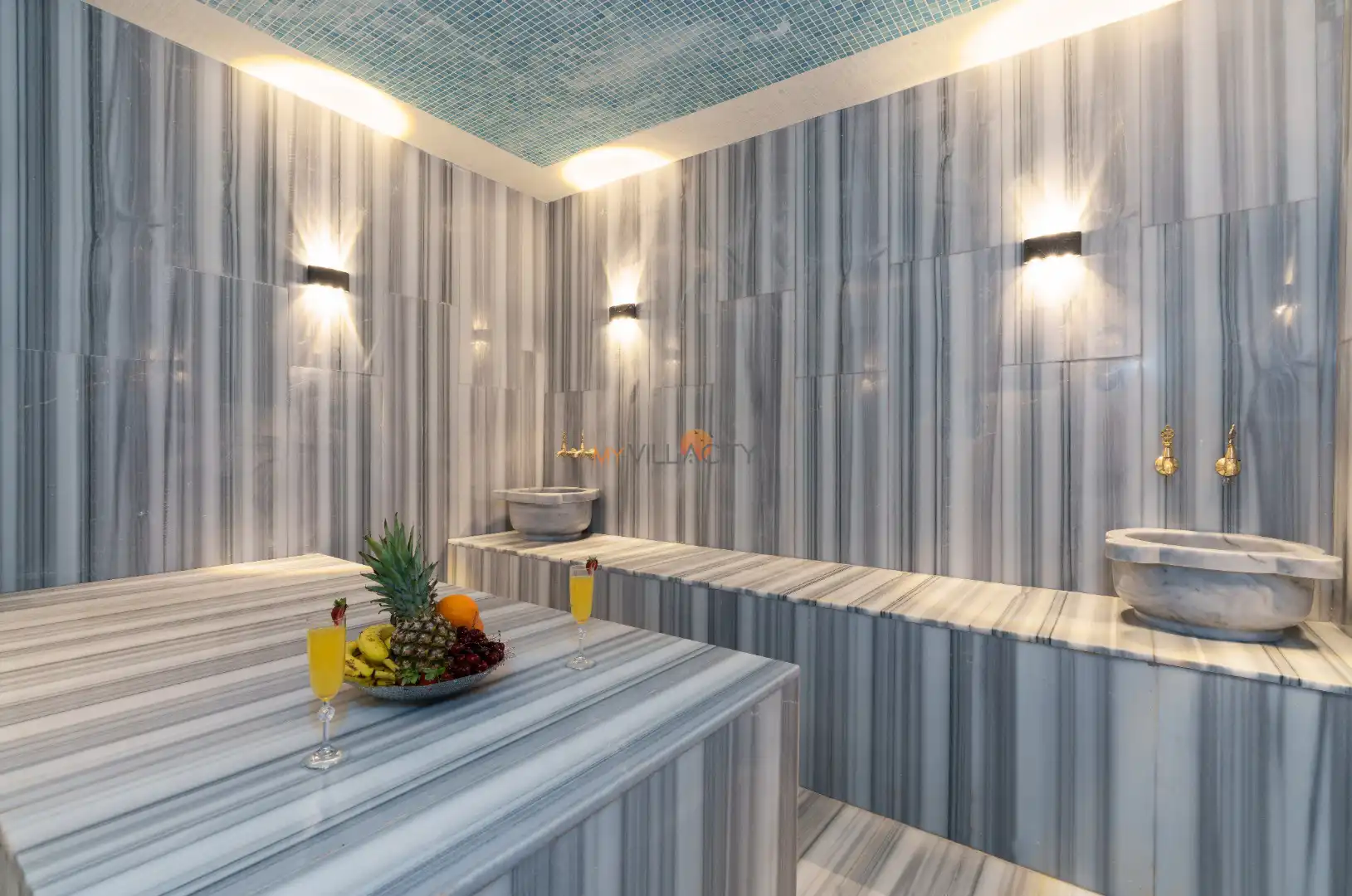 Villa içerisinde yer alan kapalı yüzme havuzu, jakuzi, hamam ve sauna gibi ayrıcalıklı özellikler sayesinde yılın her döneminde keyifli ve rahatlatıcı bir tatil geçirebilirsiniz. Ayrıca sinema salonu ve fitness ekipmanları, tatilinize hem eğlence hem de aktif bir yaşam alternatifi katmaktadır. Geniş bahçe alanı ve özel yaşam alanlarıyla dikkat çeken villa, korunaklı yapısı sayesinde muhafazakar misafirler için de oldukça uygun bir seçenek sunar.