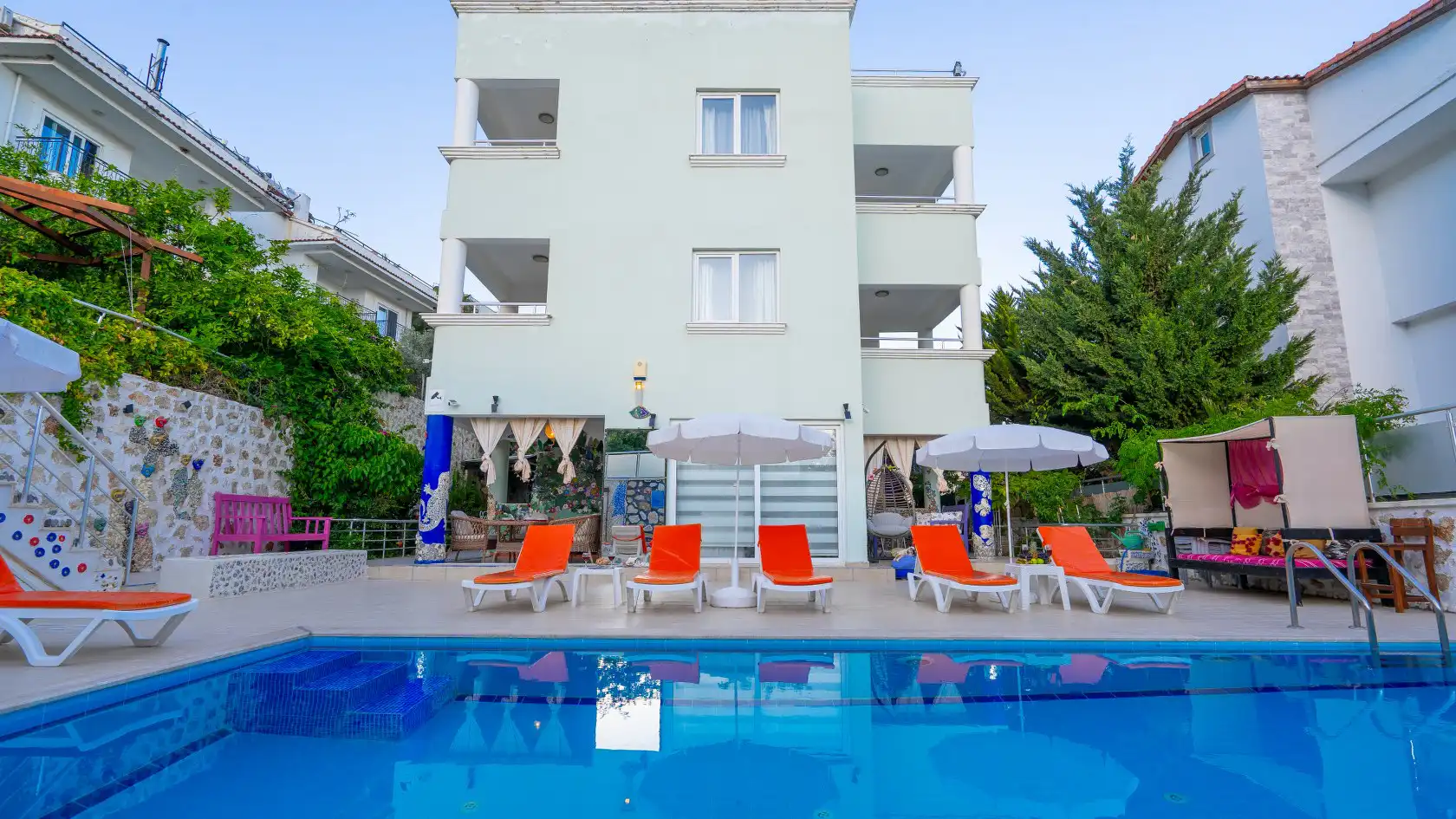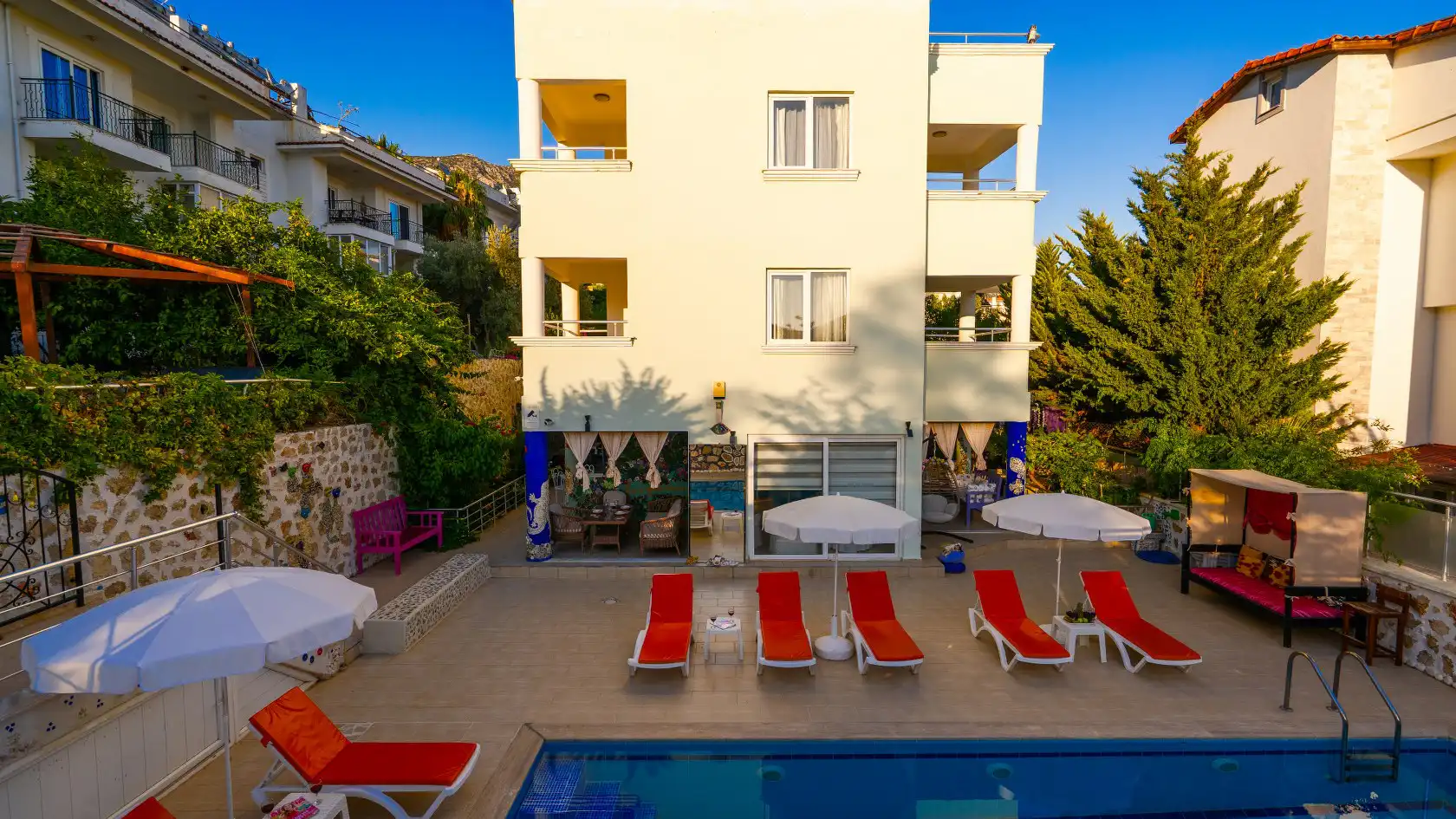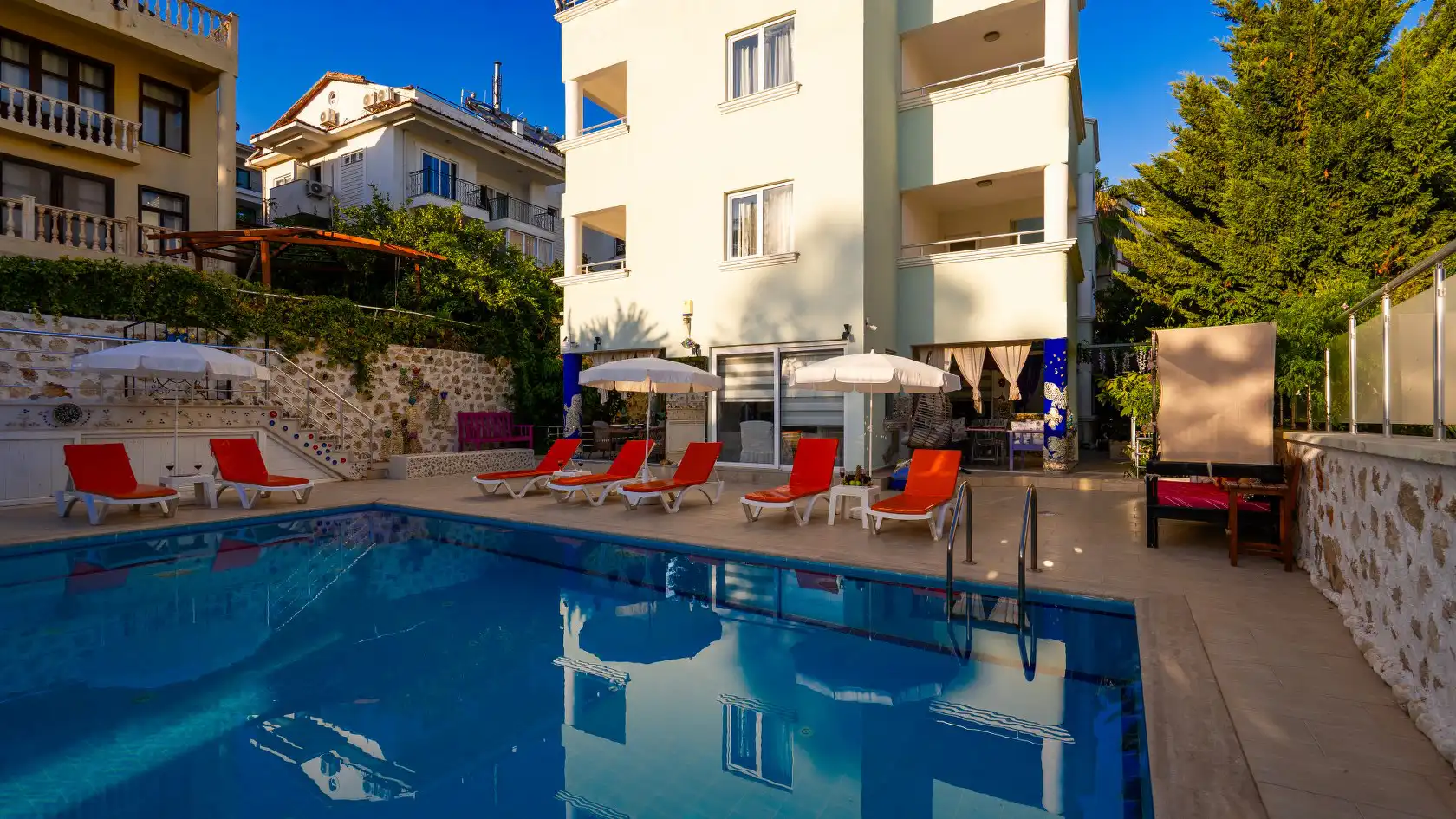 1 Çift Kişilik Yatak, 1 Banyo/WC, 2 Komodin, Elbise dolabı, Makyaj Masası, Klima,