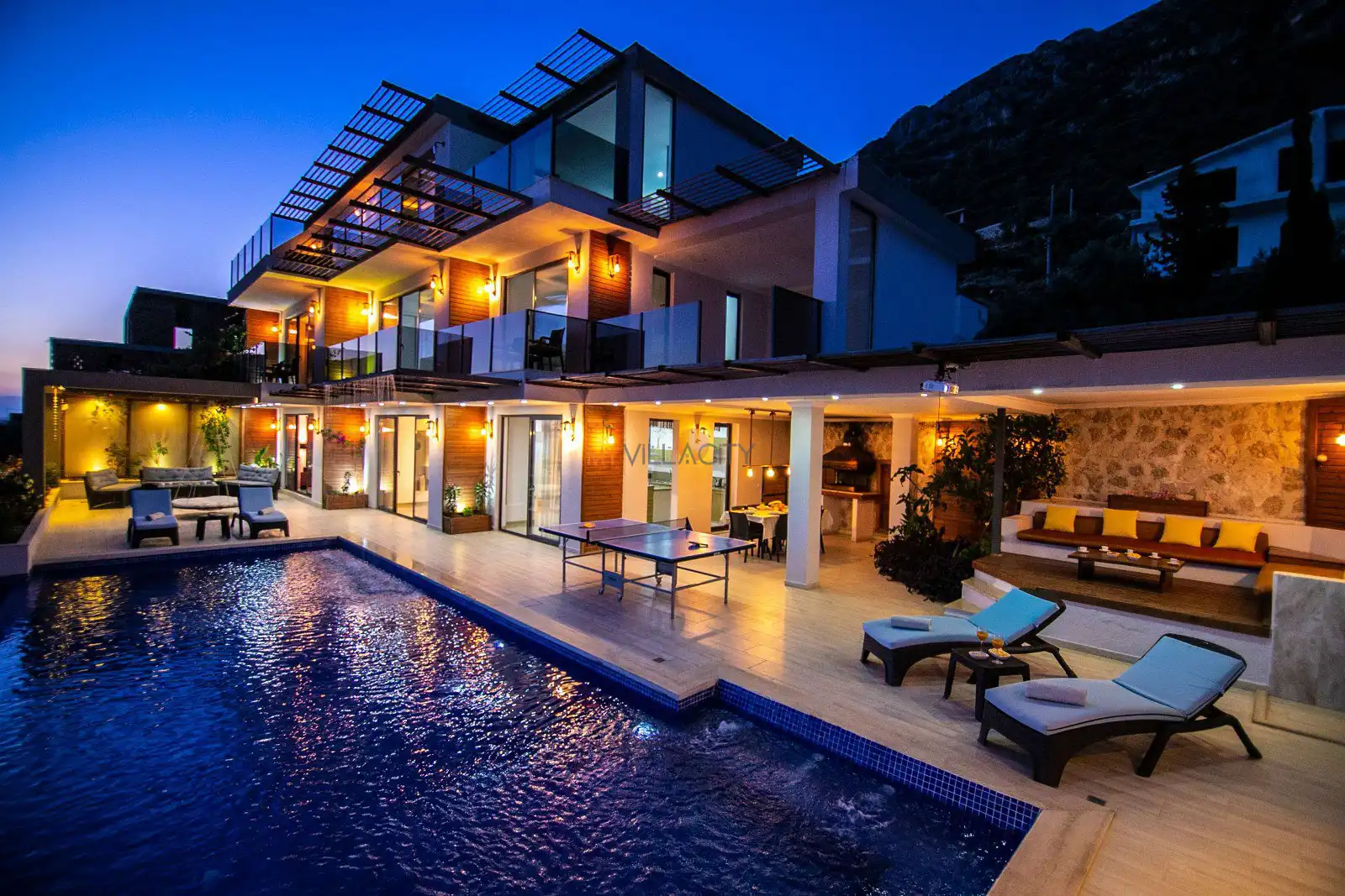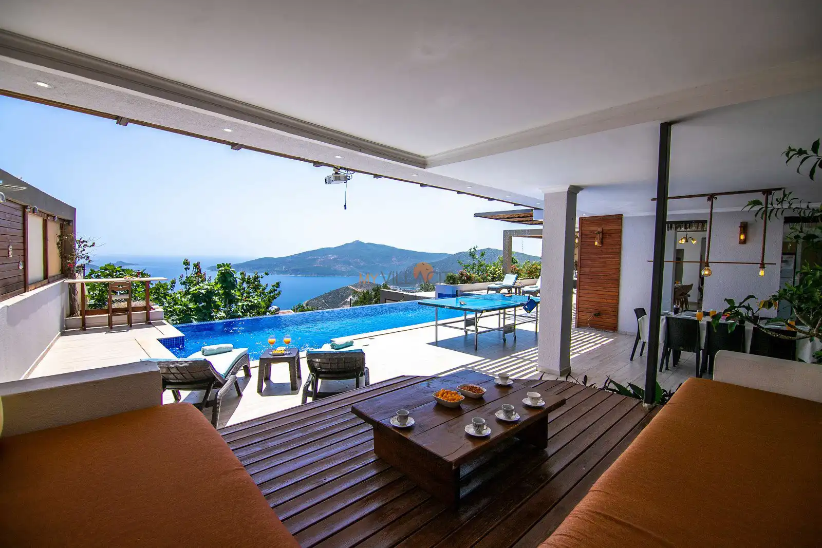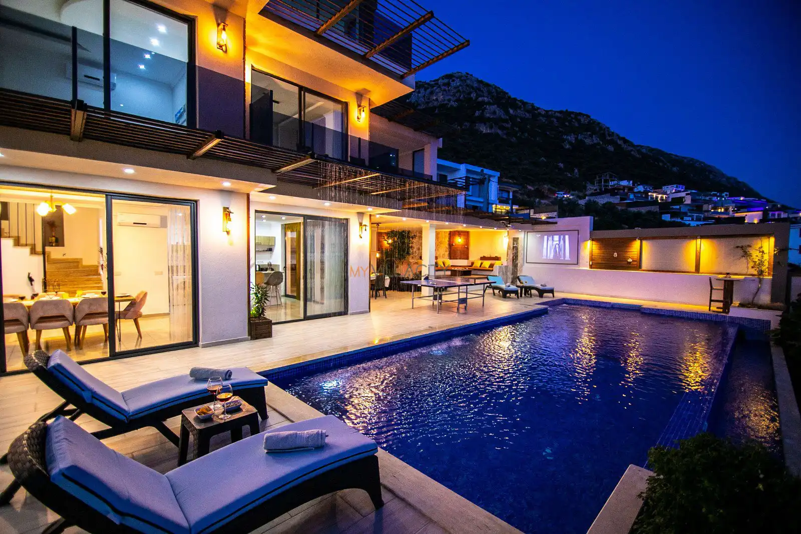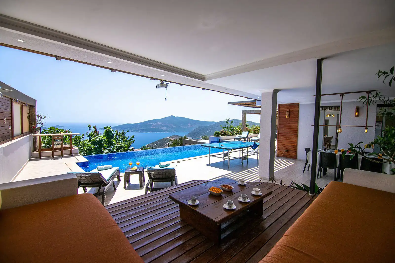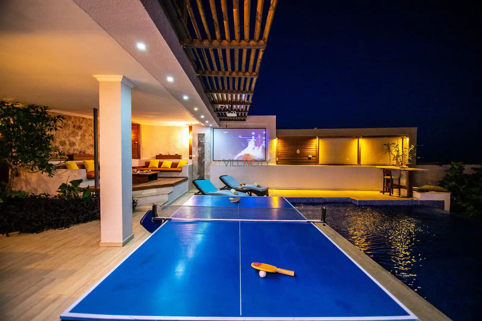 Villanın havuz terasında yer alan alanlar gün boyu keyifli vakit geçirmeniz için tasarlanırken, yaz aylarında aktif olan projeksiyon sistemi sayesinde akşam saatlerinde sevdiklerinizle birlikte keyifli anlar yaşayabilirsiniz. Ayrıca kapalı ısıtmalı havuzu sayesinde Villa Nuka, sadece yaz sezonunda değil yılın her döneminde konforlu bir konaklama imkânı sunar.