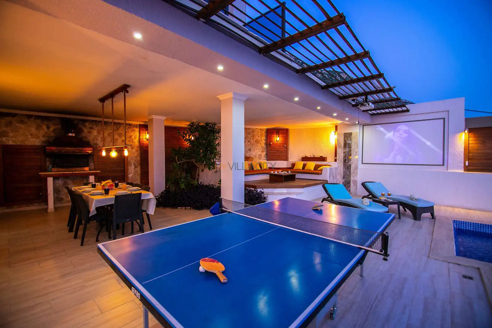 Not: Havuz terasında yer alan projeksiyon sistemi kış aylarında aktif değildir, yaz aylarında ise televizyon yayını olarak kullanılmaktadır.