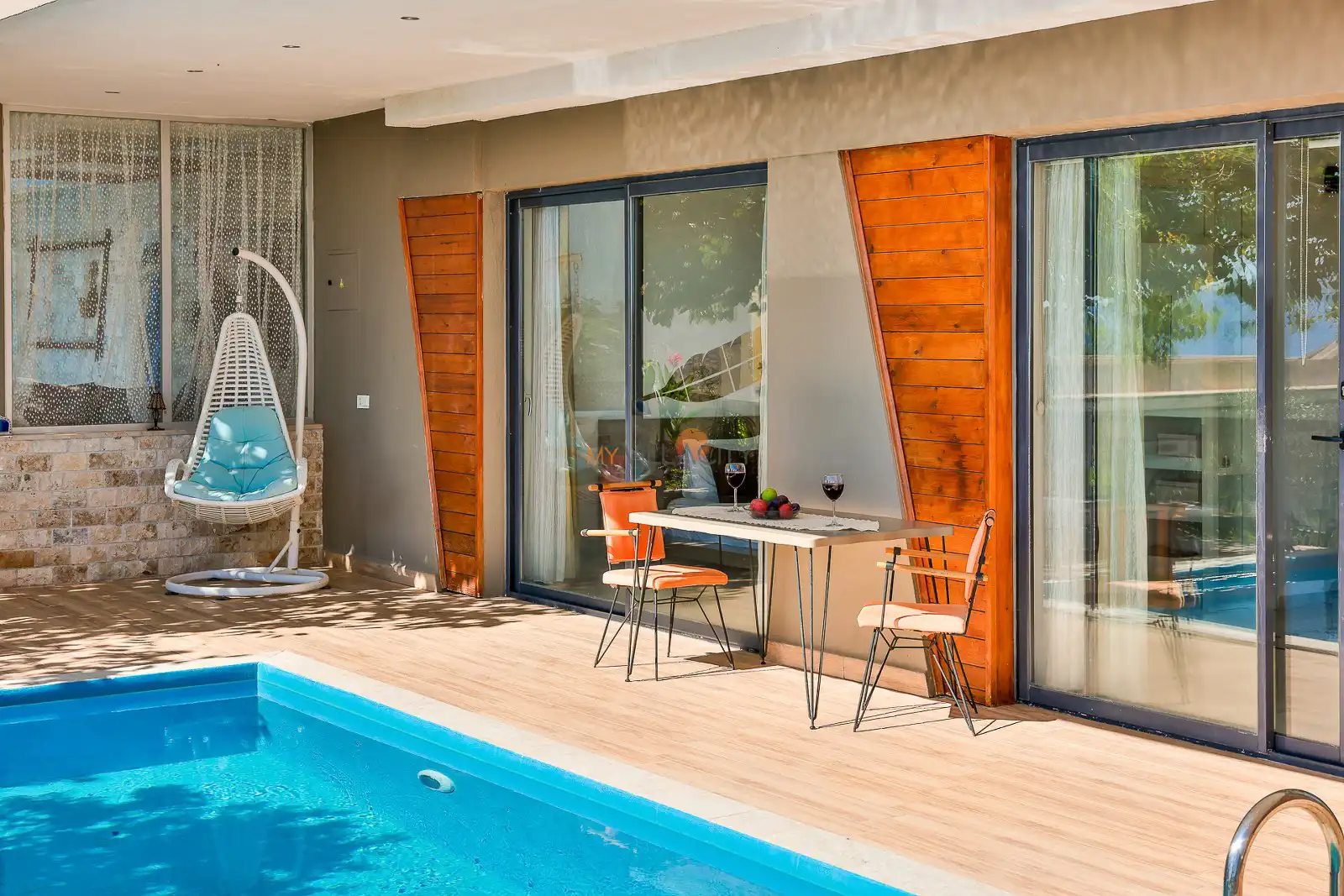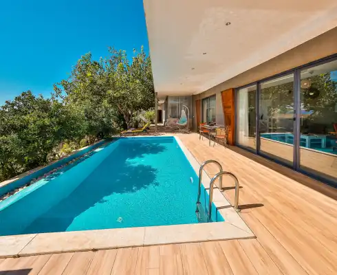 Modern ve zarif detaylarla dekore edilen villa, panoramik deniz manzarası eşliğinde huzurlu ve keyifli anlar yaşamanıza olanak tanır. Korunaklı havuz alanı sayesinde muhafazakar çiftler için ideal bir ortam sunan Villa Nuka Loft, tamamen size özel bir tatil imkânı sağlar. Gün boyu gözlerden uzak şekilde havuz keyfi yapabilir, sevdiklerinizle birlikte özgür ve rahat bir tatil deneyimi yaşayabilirsiniz.