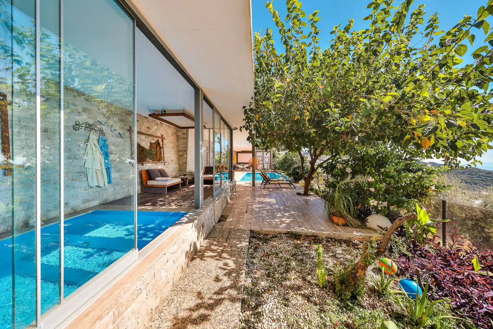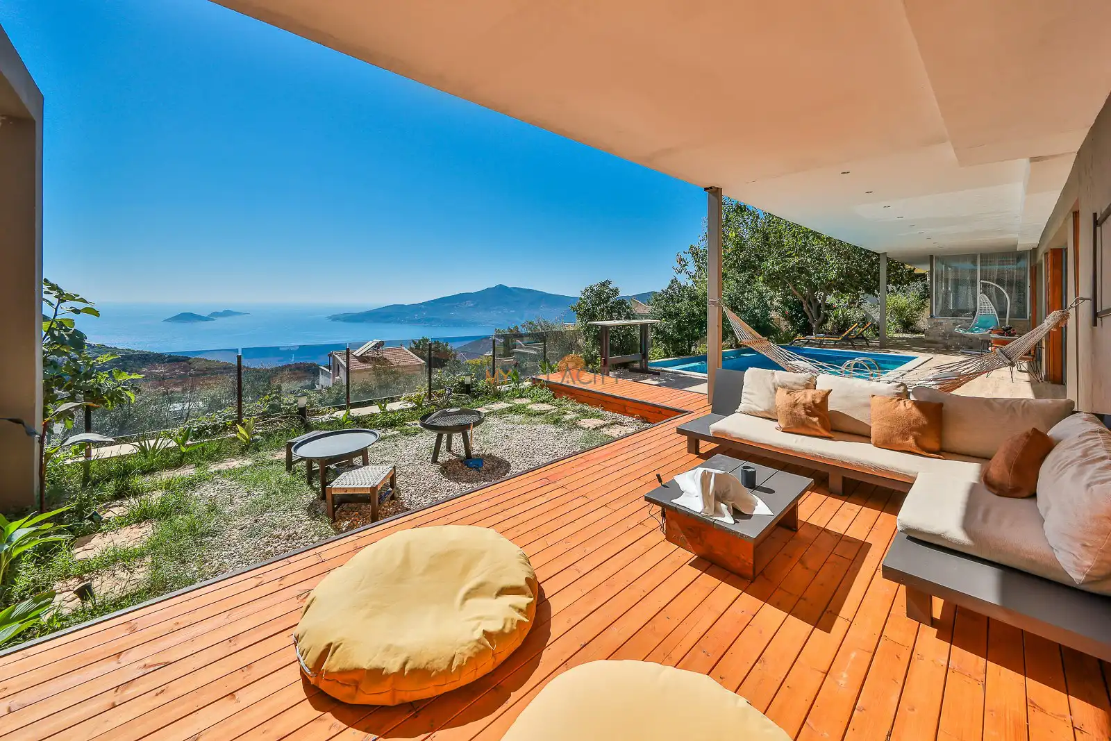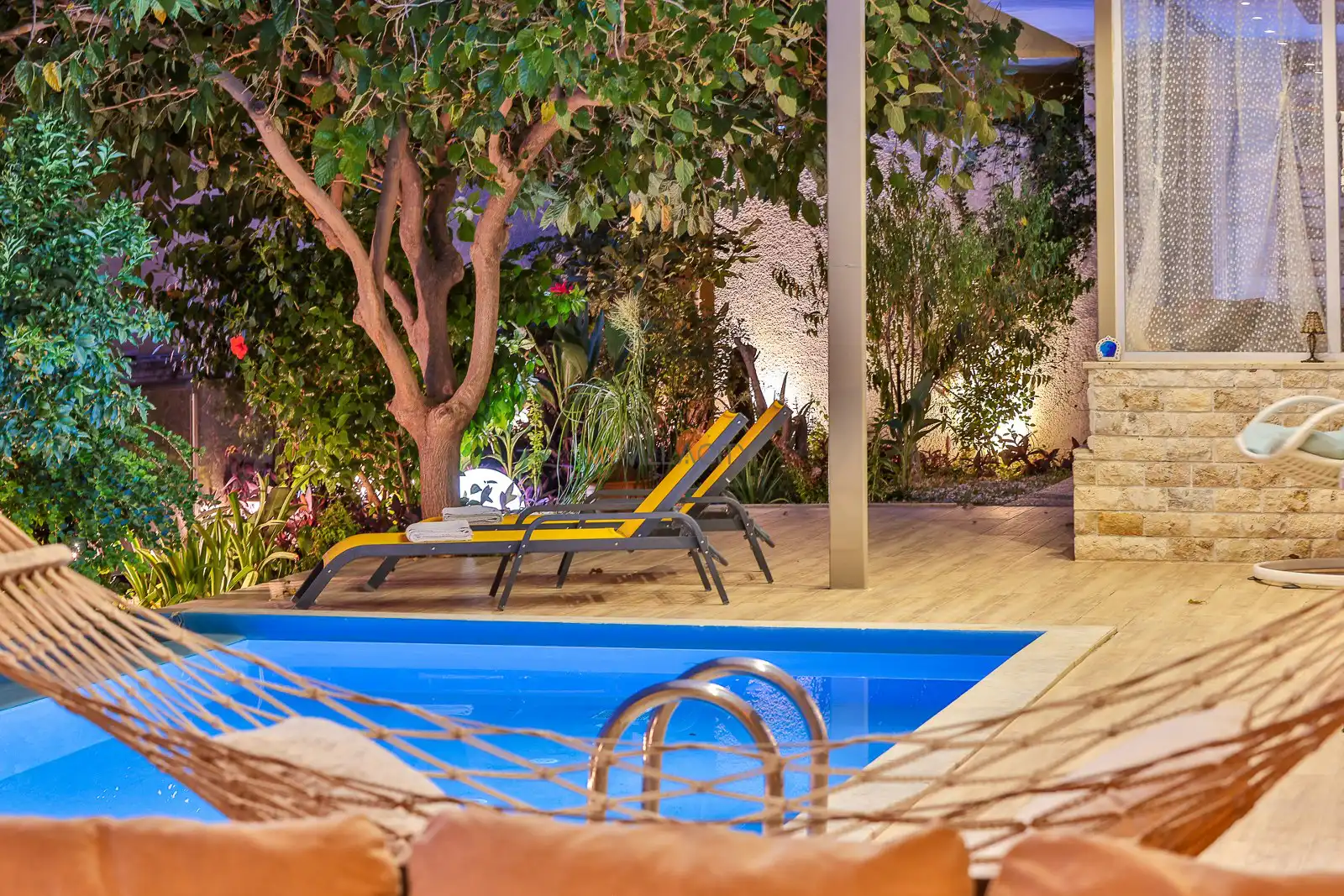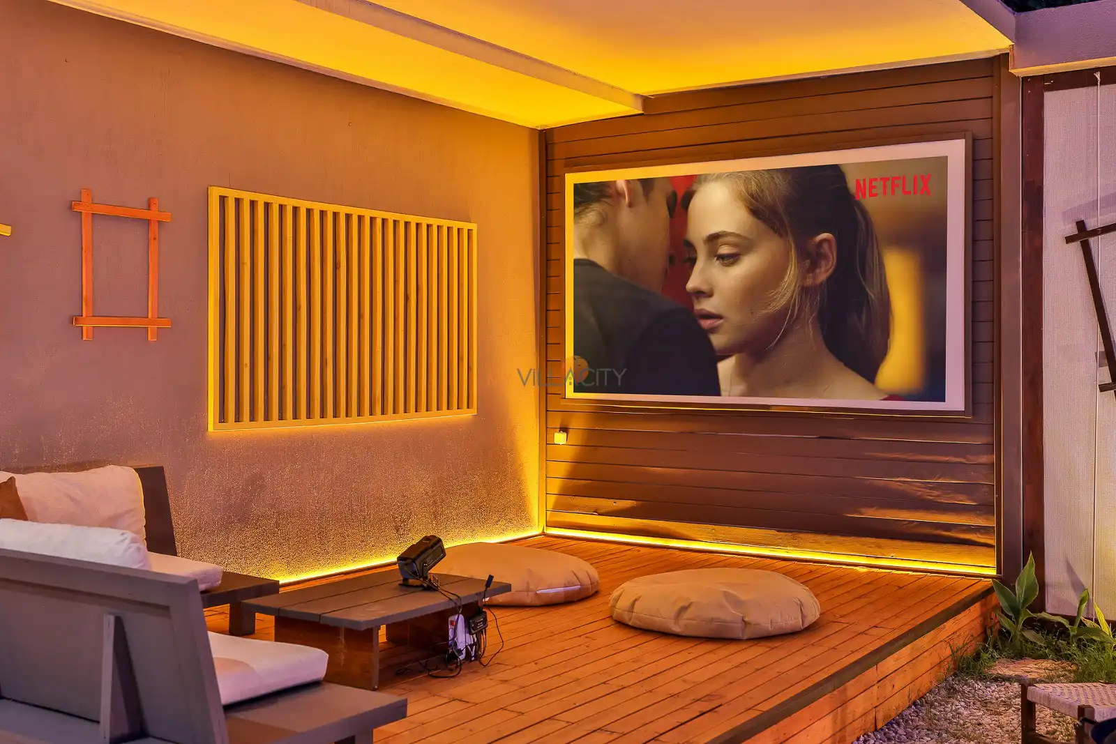 Villanın havuz terasında yer alan projeksiyon sistemi, tatilinize farklı bir atmosfer katarken; akşam saatlerinde deniz manzarası eşliğinde film keyfi yapma imkânı sunar. Ayrıca kapalı ısıtmalı havuzu sayesinde Villa Nuka Loft, sadece yaz aylarında değil yılın her döneminde konforlu bir konaklama avantajı sağlar.