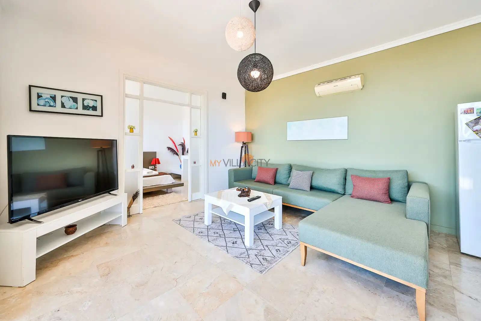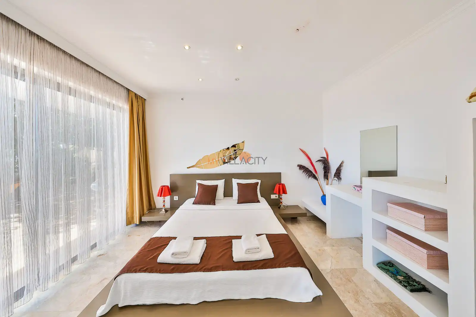 - 1 Çift Kişilik Yatak, 1 Banyo/WC, 2 Komodin, Elbise dolabı, Makyaj Masası, Klima,