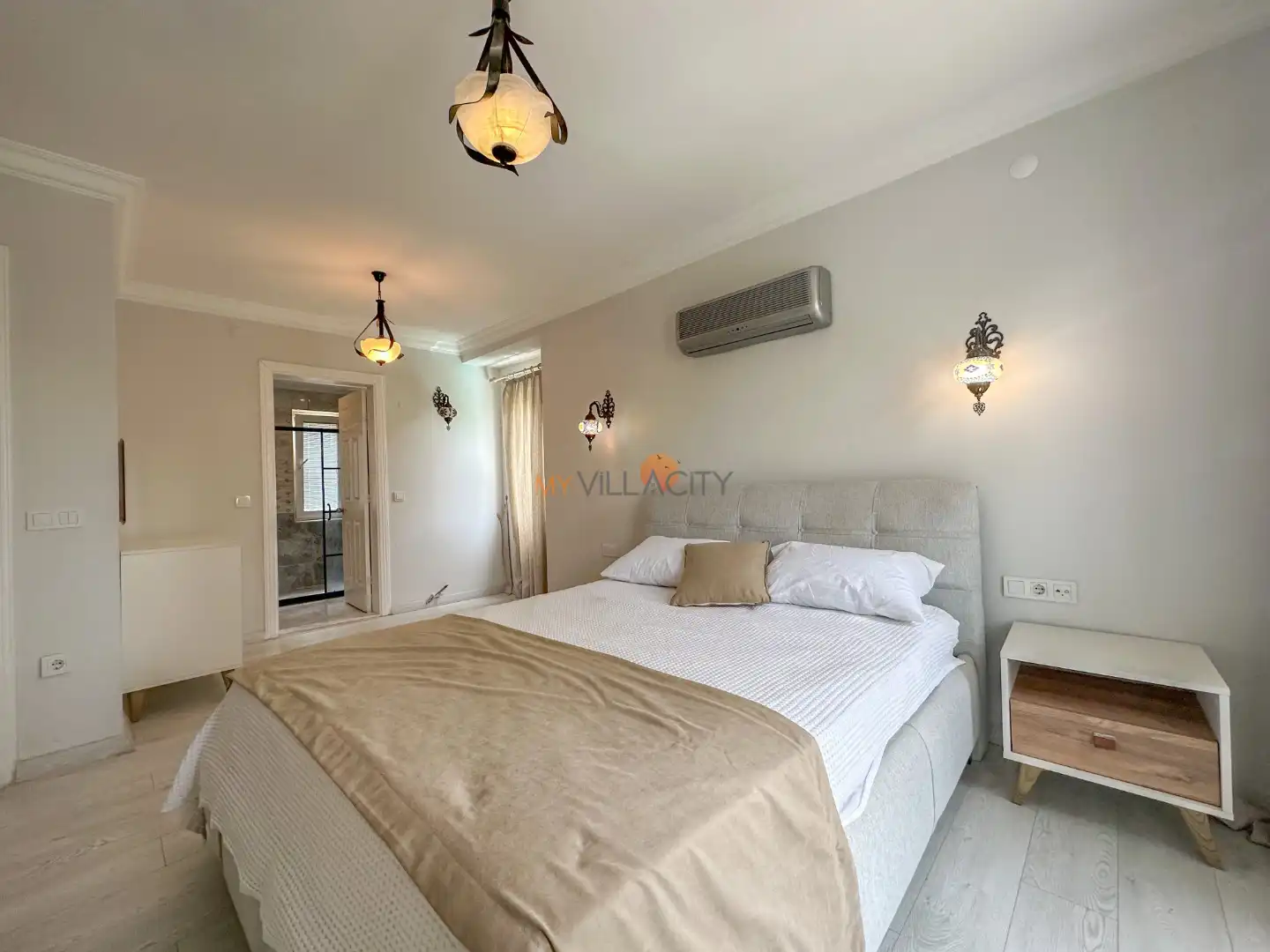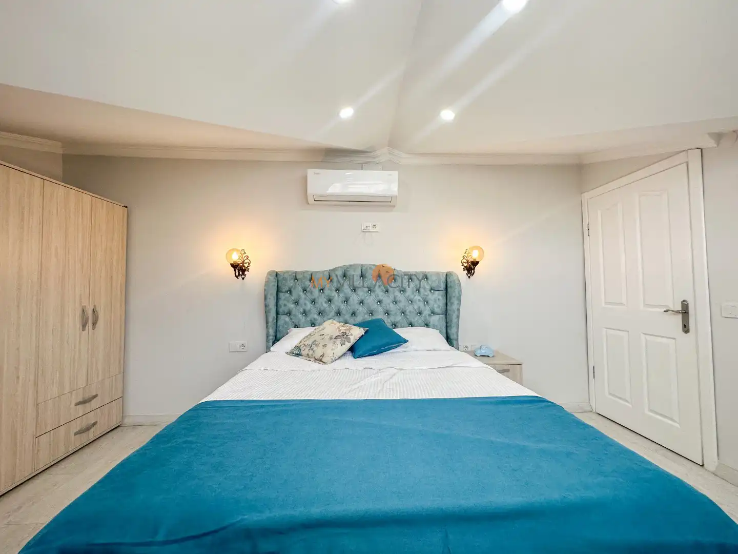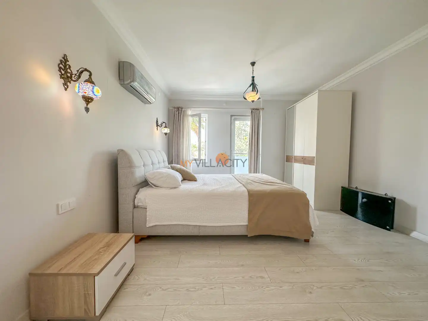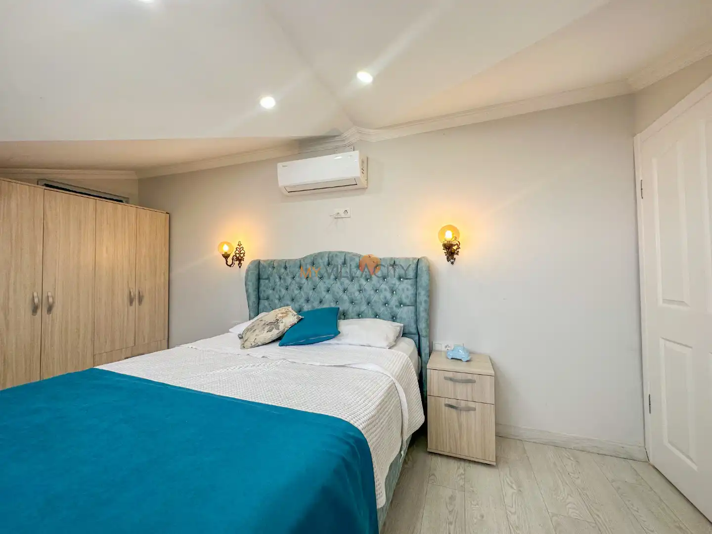 - 1 Çift Kişilik Yatak, 1 Banyo/WC, 2 Komodin, Elbise dolabı, Makyaj Masası, Klima,