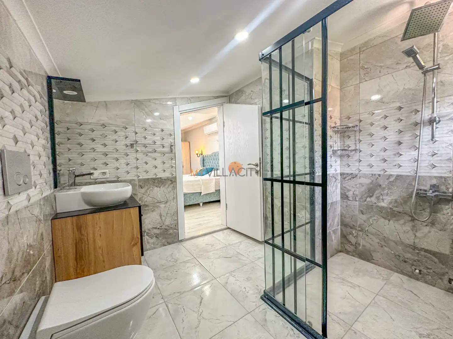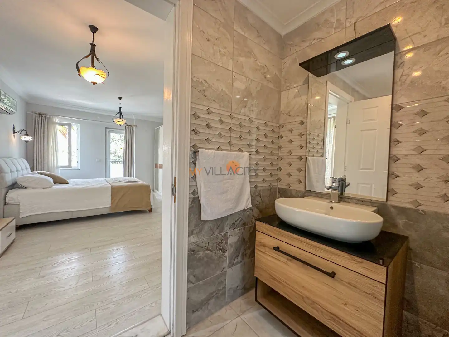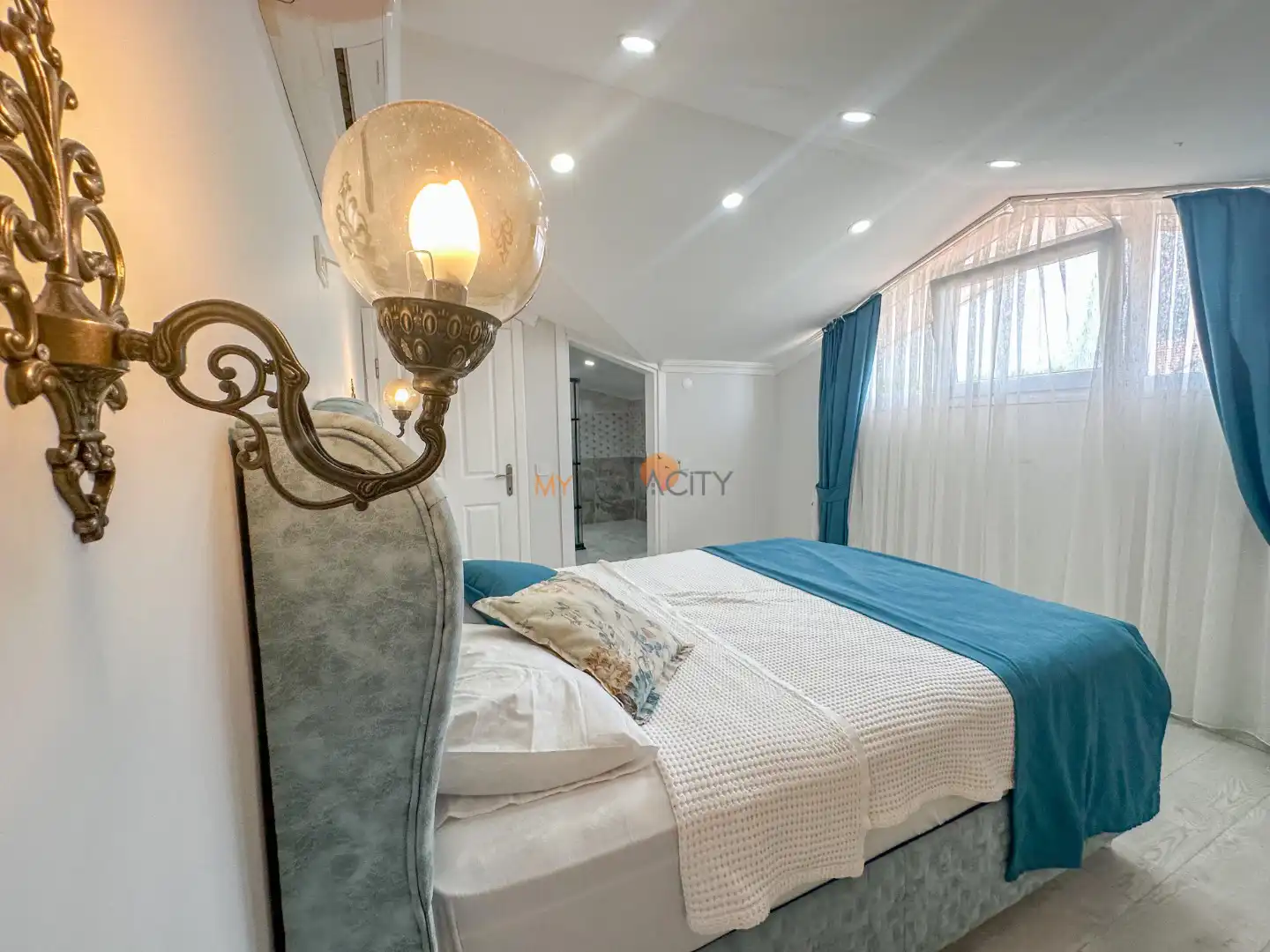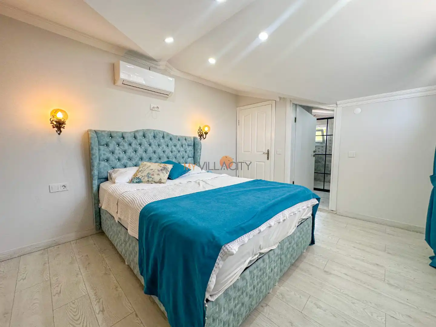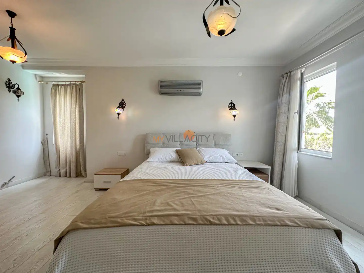 - 1 Çift Kişilik Yatak, 1 Banyo/WC, 2 Komodin, Elbise dolabı, Makyaj Masası, Klima,