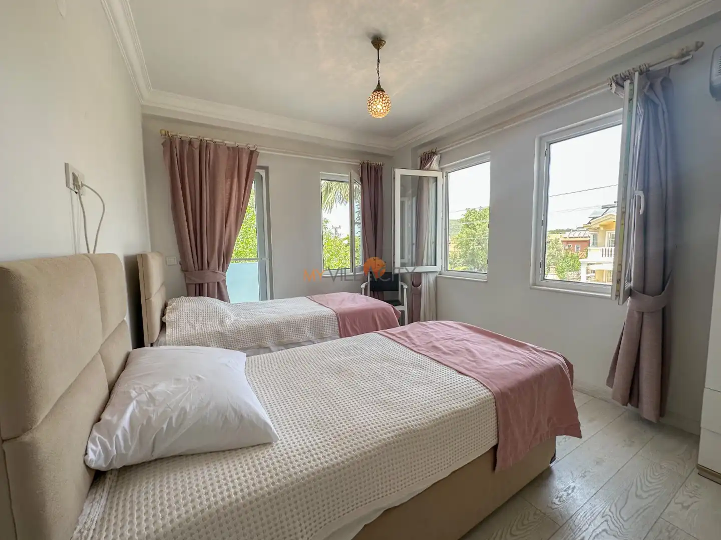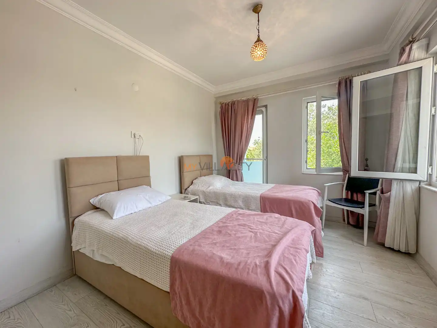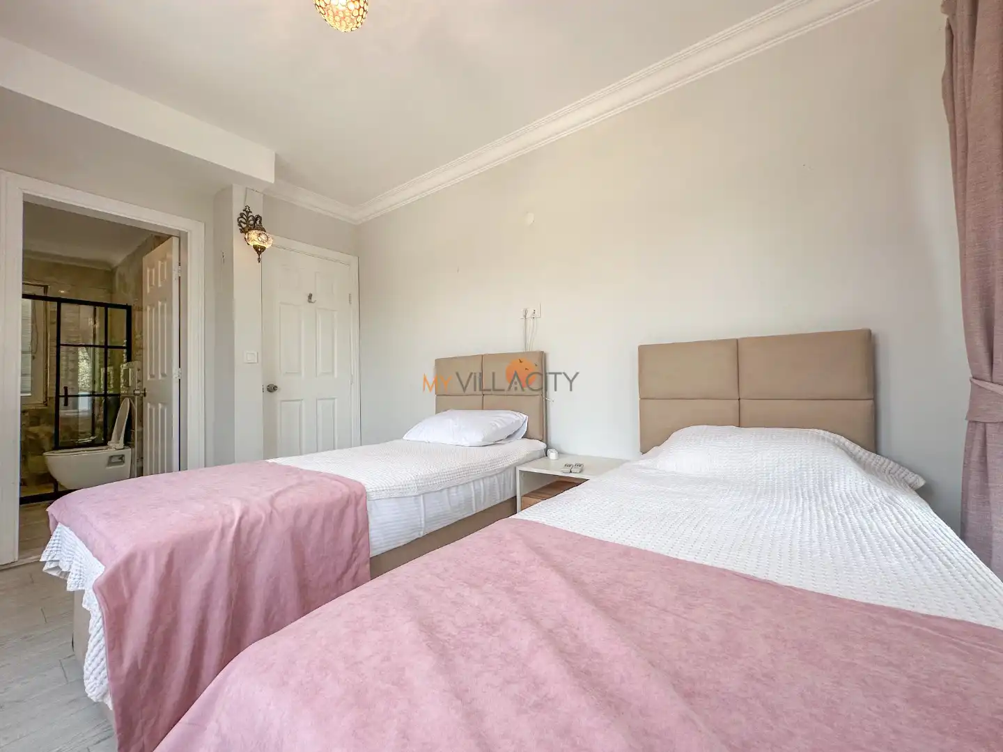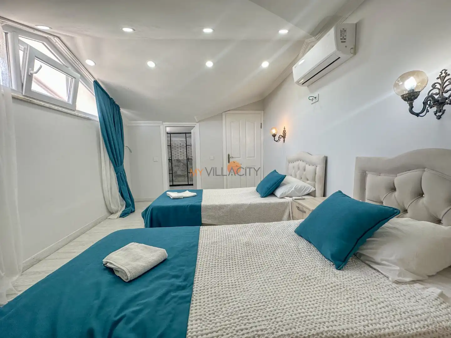 - 2 Tek Kişilik Yatak, 1 Banyo/WC, 2 Komodin, Elbise dolabı, Makyaj Masası, Klima,