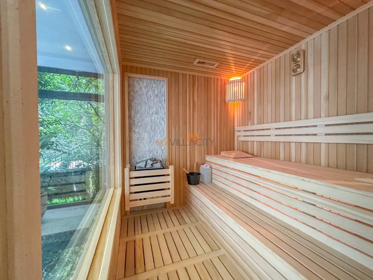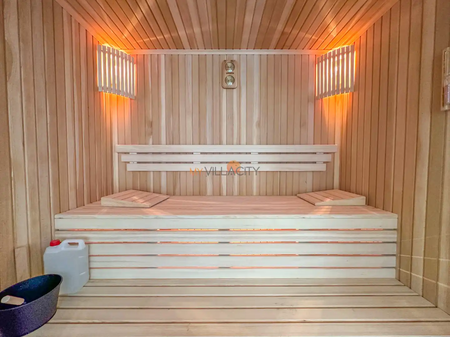 - 1 Çift Kişilik Yatak, Sauna, 1 Banyo/WC, 2 Komodin, Elbise dolabı, Makyaj Masası, Klima,