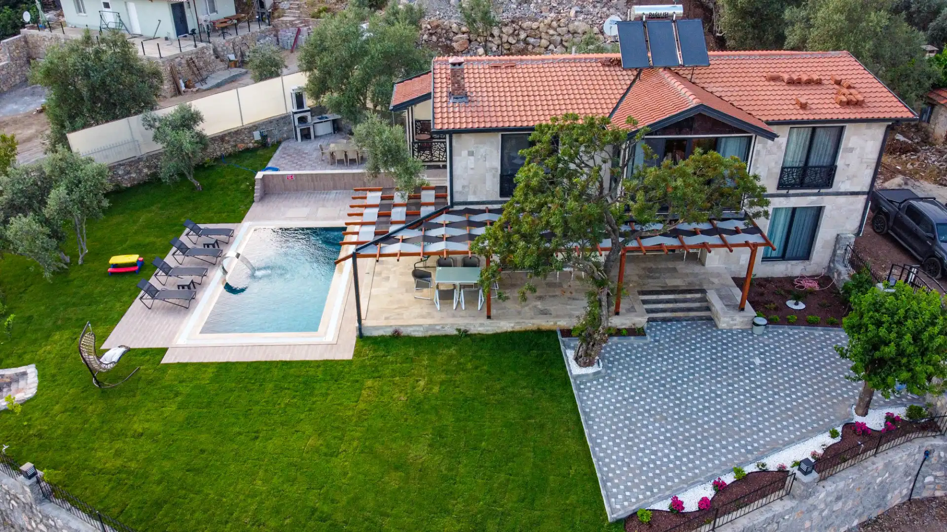 Göcek'in büyüleyici doğasında konumlanan Villa Panorama, özel havuzu ve geniş terasları ile dikkat çeker. 5 yatak odası ve 3 banyosuyla geniş aileler ve arkadaş grupları için idealdir. Villa, modern mobilyaları ve tam donanımlı mutfakla konforlu bir konaklama sunarken, Göcek Marina ve plajlarına yakınlığı ile de caziptir.