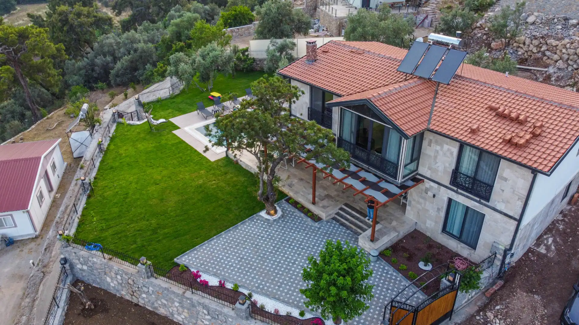 NOT:Doğanın içerisine konumlanmış olan tüm villalarda ve yazlık evlerde, kelebekler, böcekler, karıncalar, sinekler vb. gibi canlılara rastlama olasılığı bulunmaktadır. Bu duruma karşı düzenli ilaçlama yapılmaktadır. Bu not, sadece bu eve özgü değil, aynı zamanda doğanın içinde bulunan tüm evlerimiz için geçerlidir.